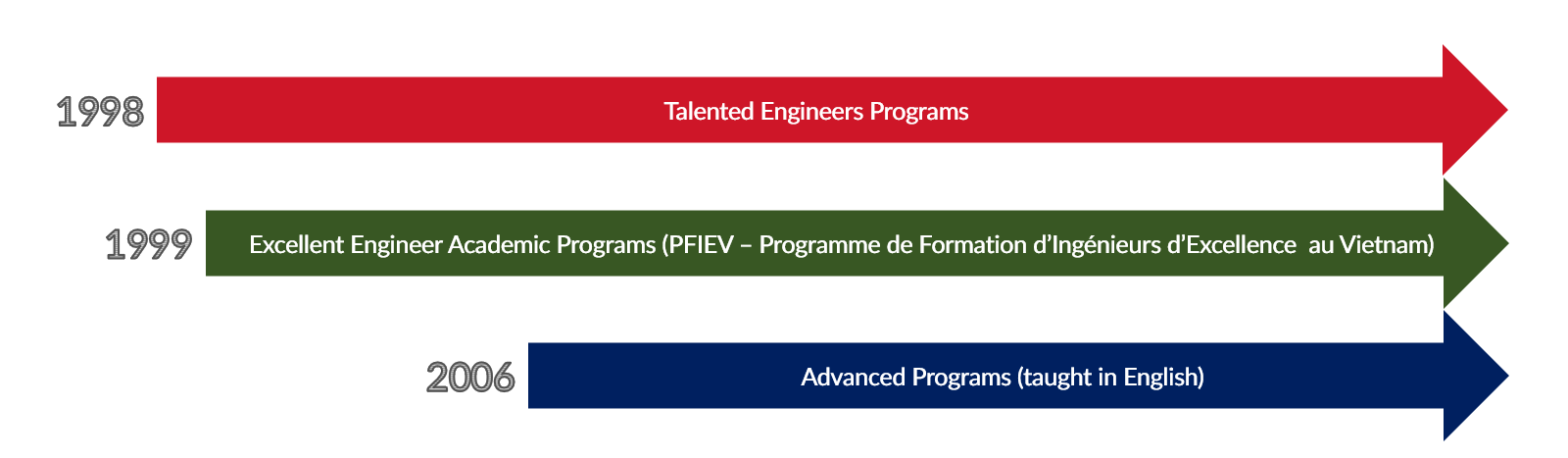 The Elitech project was founded in 2017 as an initiative to foster stronger reform in engineering education. The Elitech programs are designed towards elite students who aspire to become excellent engineers, experts, and managers in the core technology sectors of the Industrial Revolution 4.0 (Industry 4.0). Hanoi University of Science and Technology built the Elitech project including the Advanced programs - Talented programs - Excellent Engineer Training Programs - PFIEV progams.