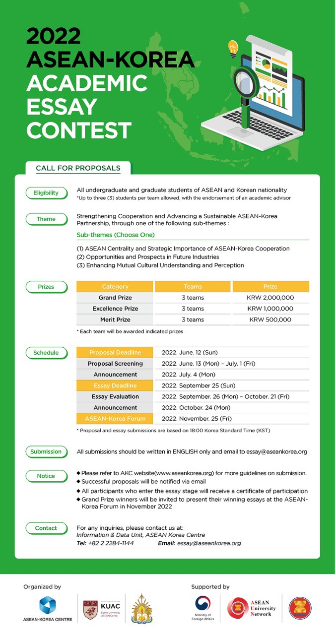 Tel: +82 2 2284-1144 or Email: essay@aseankorea.org