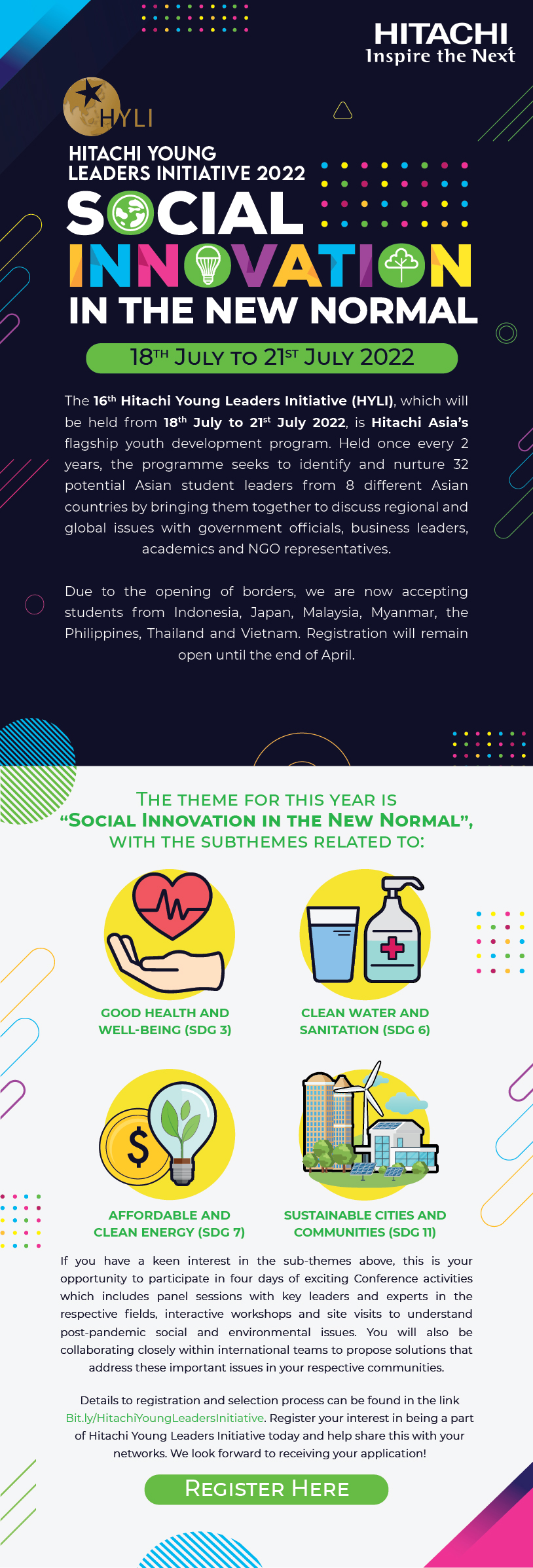 Building on the success of past initiatives, Hitachi will host its HYLI 2022 in Singapore from the 18th to 21st July 2022.