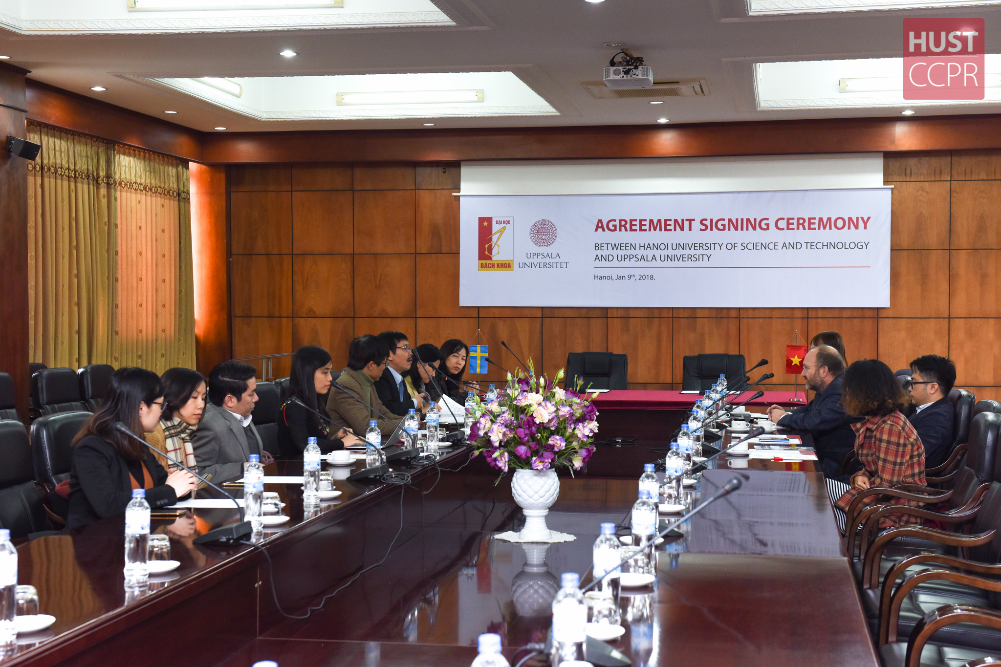 During the visit of Assoc. Prof. Dr. Hoang Minh Son, HUST President to Sweden in September 2017, Hanoi University of Science and Technology officially signed an MOU with Uppsala University to focus more on double degree training program cooperation and open up more potential diversified types of coordination from both sides in student, staff exchange. This fruitful MOU has opened up a new door for our HUST students since January 9th 2018 when both universities continued to officially sign an agreement on 3+1 education contract between Global ICT 3+1 (English-taught ICT training program) at HUST and Bachelor of Computer Science in Uppsala University.