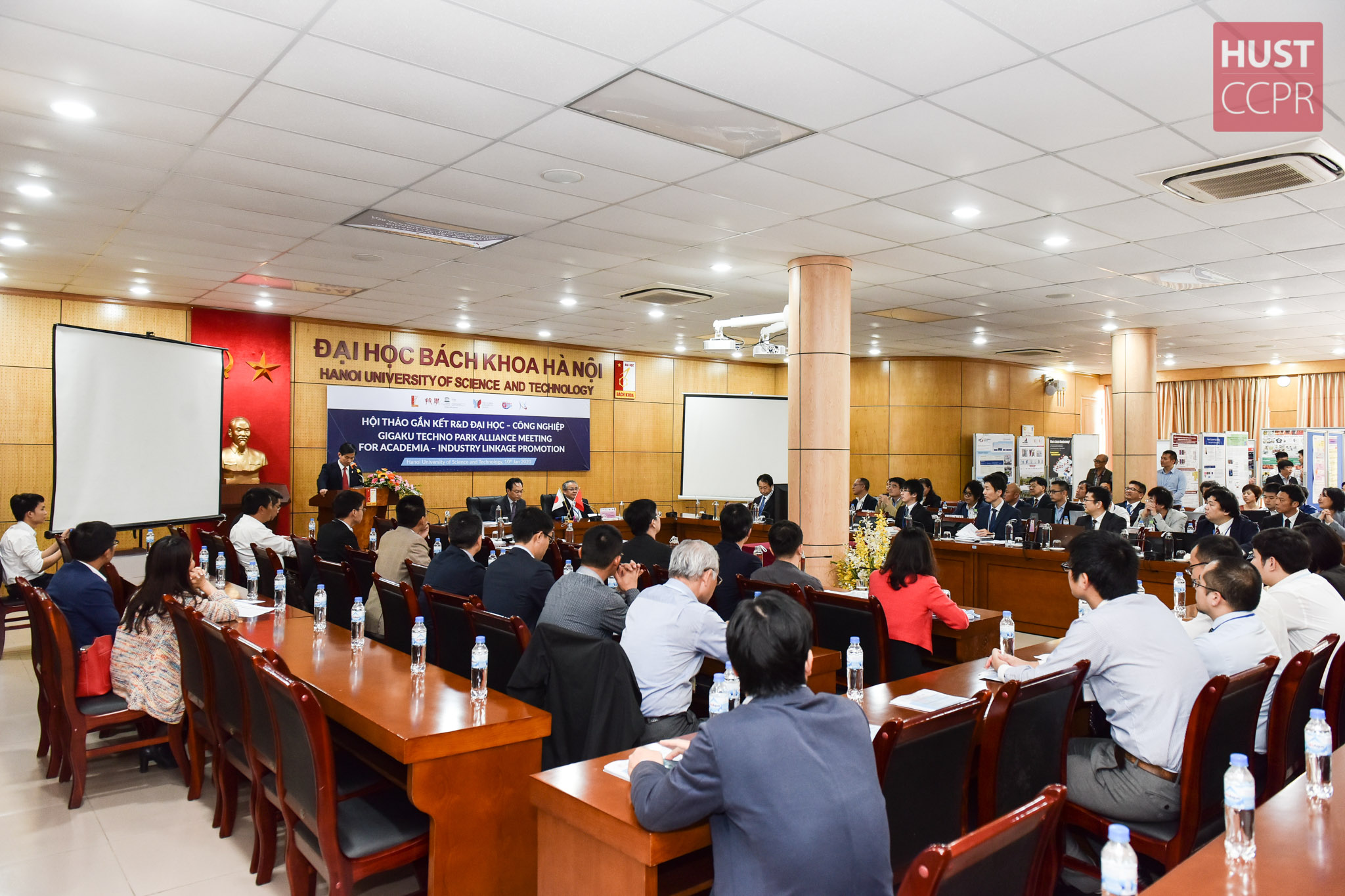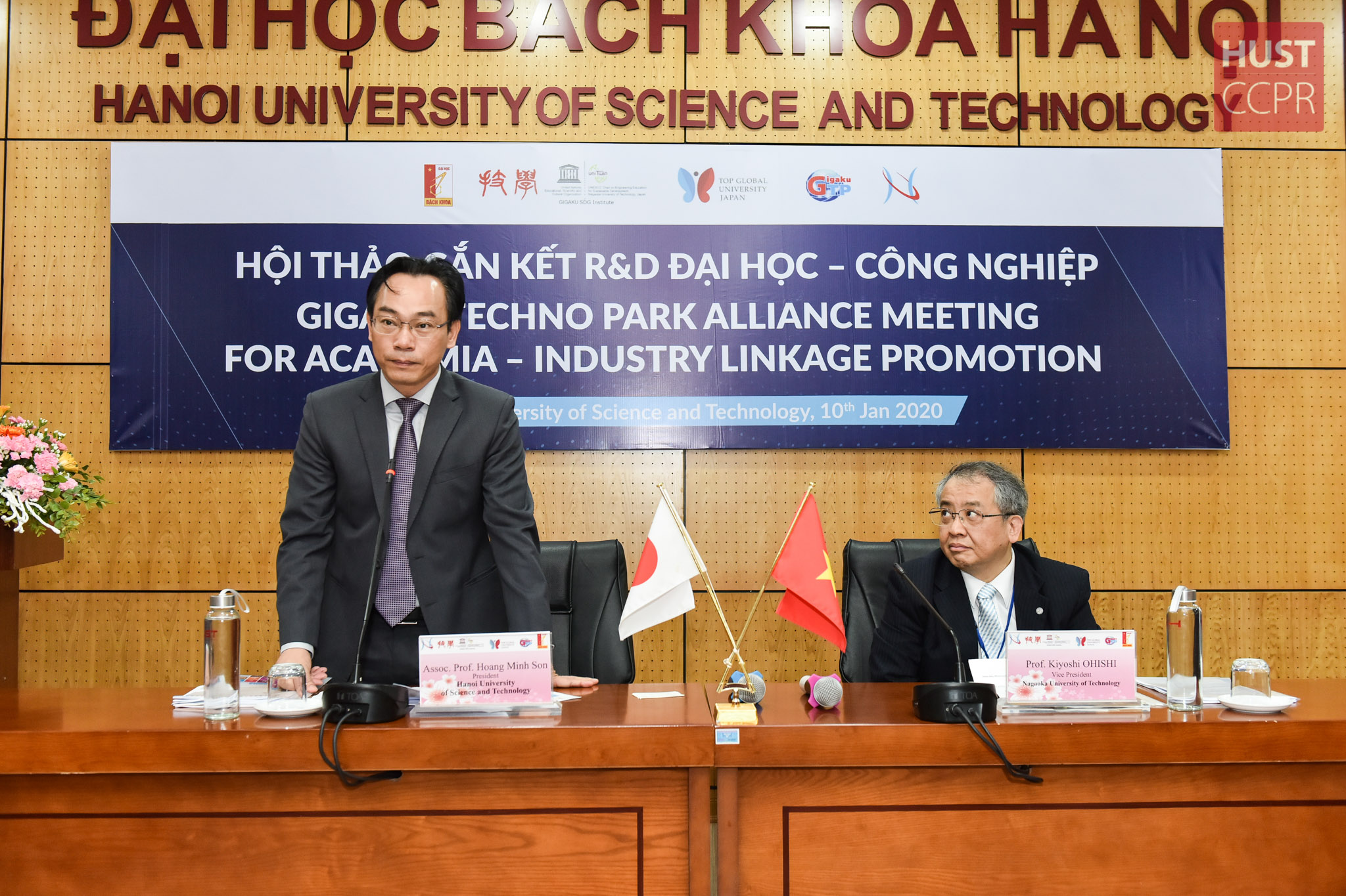 On Jan 10th, 2020, Hanoi University of Science and Technology (HUST) coordinated with Nagaoka University of Technology (NUT) to hold “Gigaku Techno Park Alliance Meeting for Academia-Industry linkage promotion” workshop, which aims to promote cooperation between universities and companies from the two countries, especially on human resource training and research – technology transfer to meet the demand of business corporates.