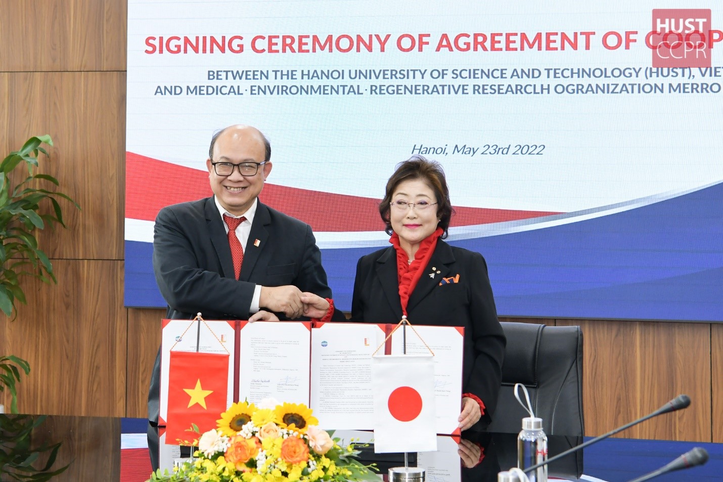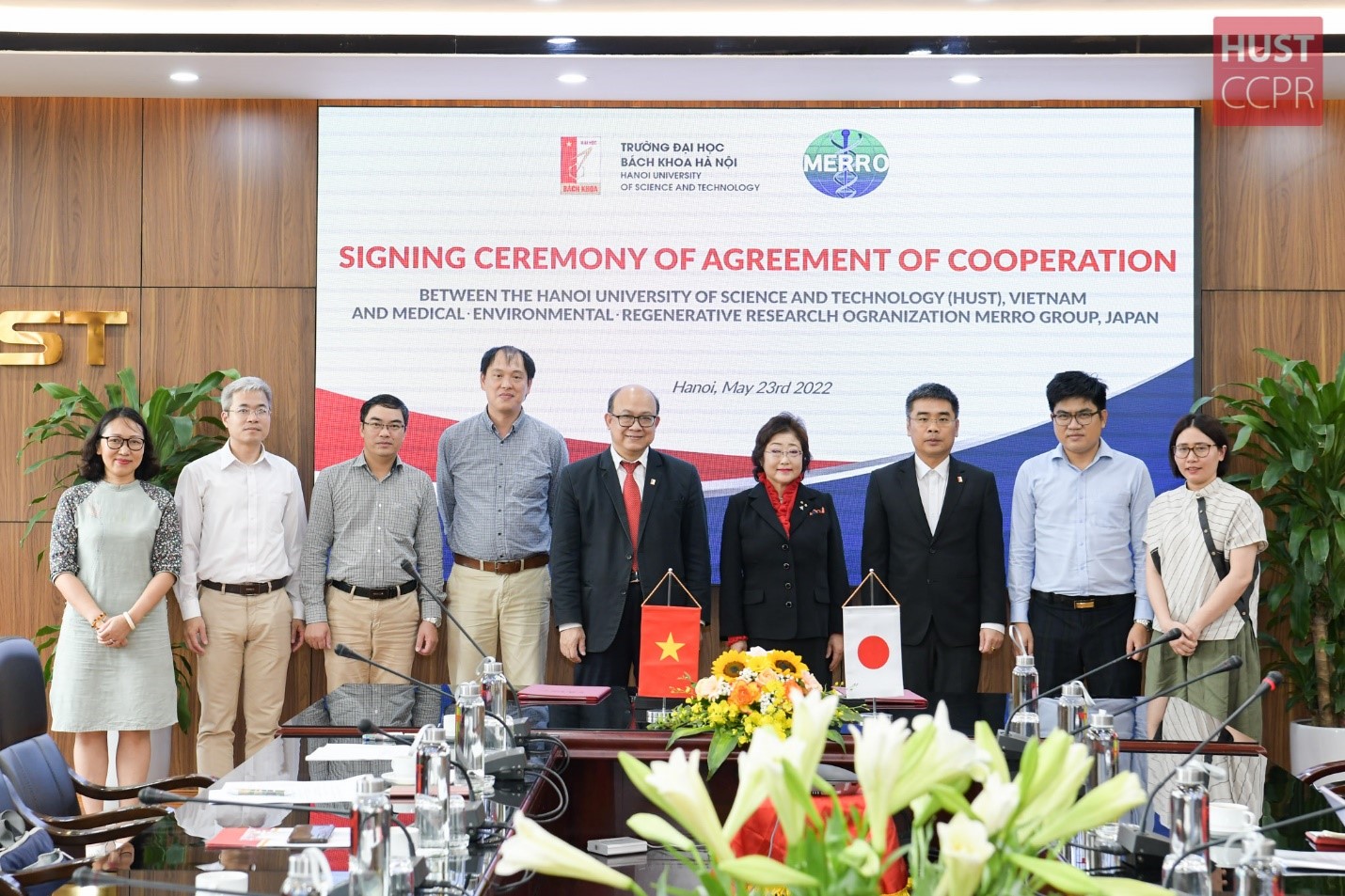 On May 23rd, 2022, Hanoi University of Science and Technology (HUST), Vietnam, and Medical・Environmental・Regenerative Research Organization MERRO Group Japan (MERRO) signed the comprehensive Agreement in order to implement and promote academic exchange, research cooperation, and joint industrialization, creating business by making the practical use of the result acquired from the research between the two Parties.