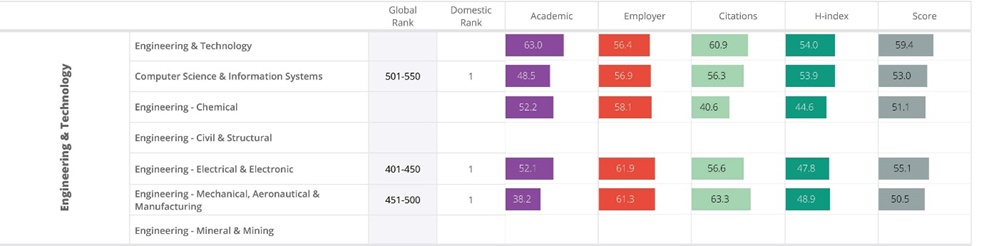 Adapting the methodology that were based on scientifically designed criteria and reliable data sources, on February 27th 2019, Quacquarelli Symonds Educational Institution - QS (United Kingdom) announced the results of QS University World rankings by Subject, ranking 48 subjects in 05 areas for higher education institutions from 153 countries around the world. Only 1,222 higher education institutions were ranked in 2019 in terms of discipline groups. Hanoi University of Science and Technology (HUST) has 03 subjects ranked in top 400 – 550 in Engineering &Technology, which are Mechanical, Aeronautical & Manufacturing, Electrical & Electronics and Computer Science & Information Systems.