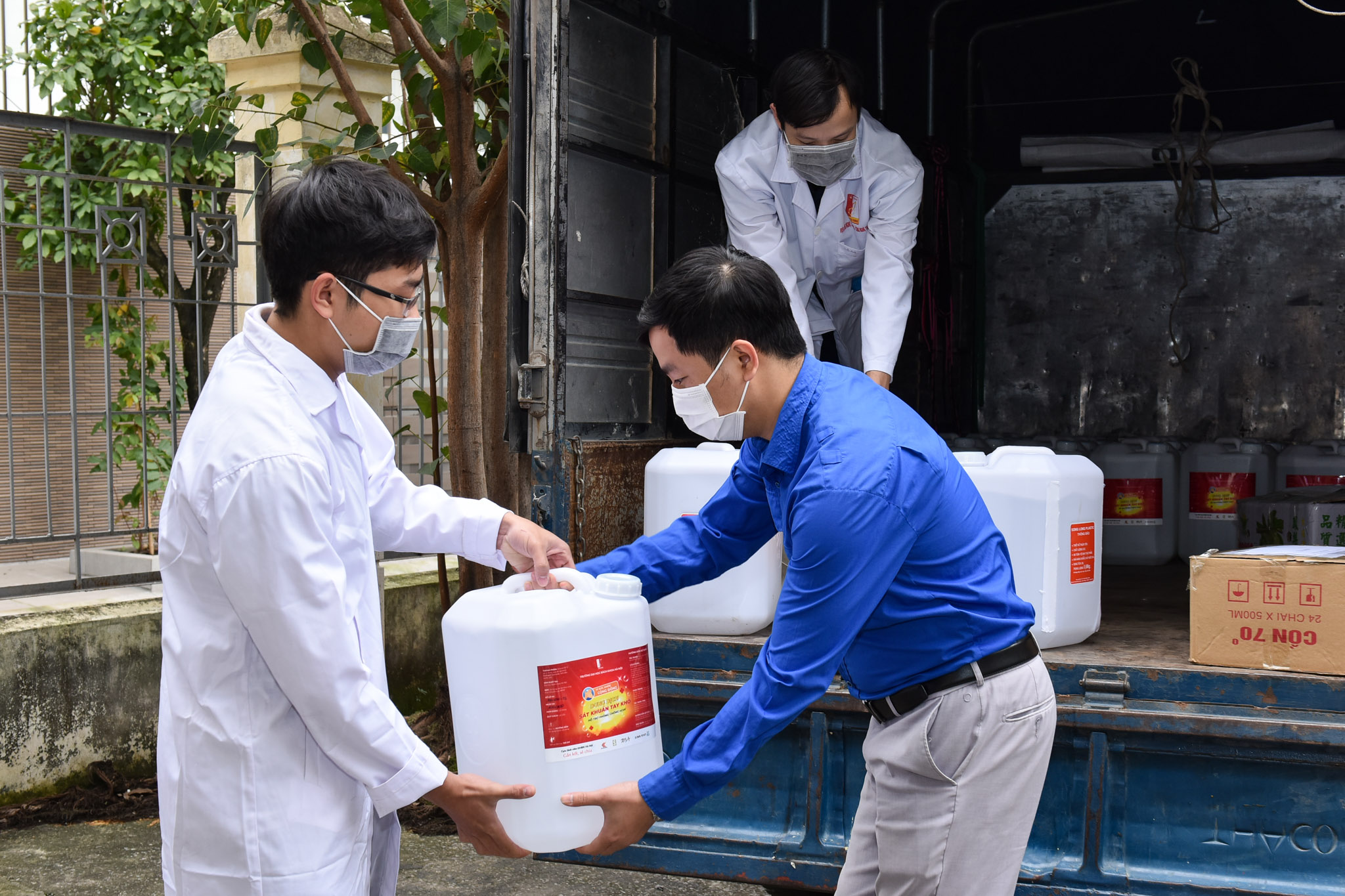 Prof. Dinh Van Phong - Vice President of HUST said: “At a time when our whole country is combating and preventing the coronavirus, we hope that these disinfectant solutions will partly help the people of Son Loi village to fight the disease.”