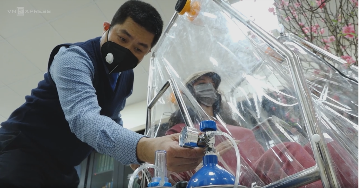 Last July, a flight departed from Hanoi to bring home 219 Vietnamese workers, of whom 120 were Covid-19 positive, from Equatorial Guinea. The narrow space on the aircraft, lack of ventilation and such a high number of infected patients made medical staff highly vulnerable to Covid-19 infection. It was Associate Professor Phan, along with his team, who set up 4 positive pressure chambers using plastic screens to separate the infected passengers from others.