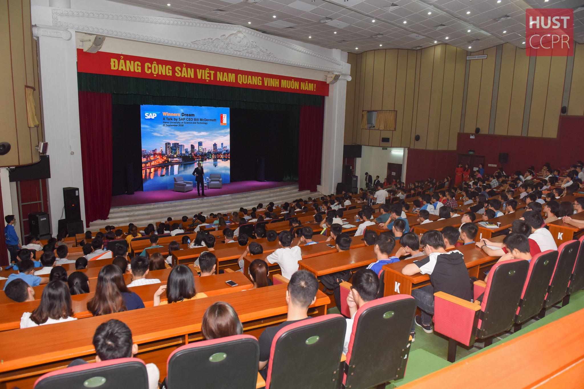 SAP CEO Bill McDermott, who grew SAP from USD 39 billion (2010) to USD 144.7 billion (Feb 2018) visited Vietnam for the first time. In spite of his packed schedule meeting with top government officials and leading Vietnamese enterprises, Mr. Bill McDermott also spent time sharing with HUST students about his life and leadership lessons.