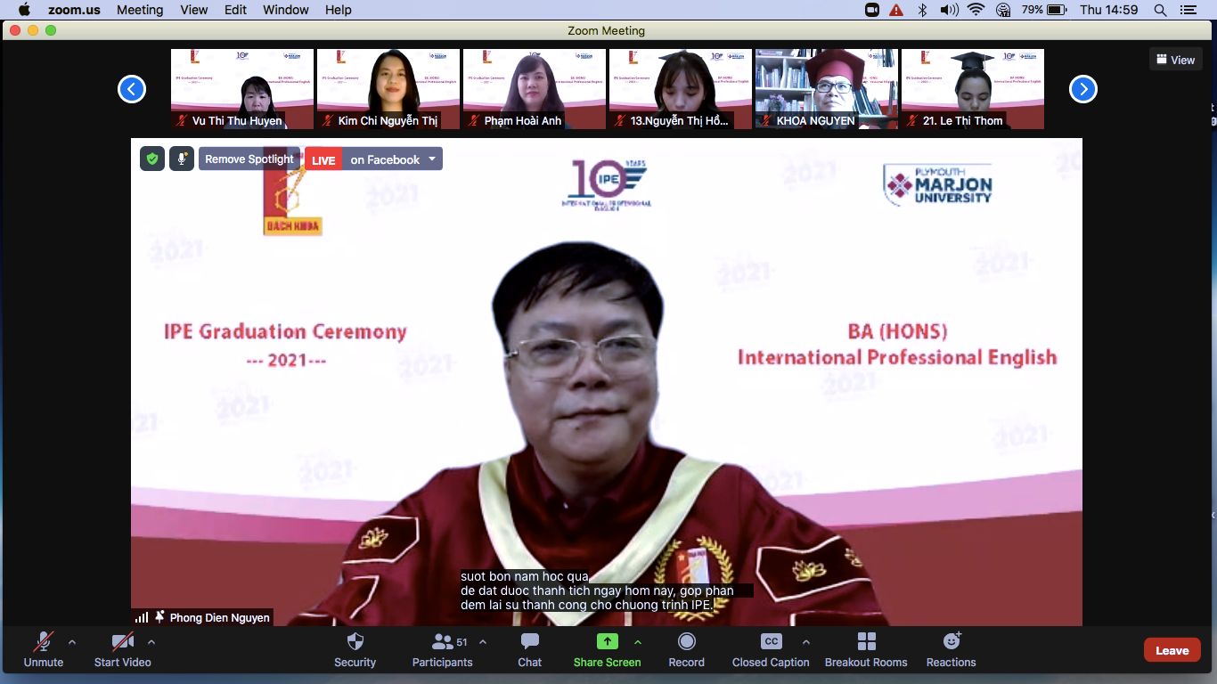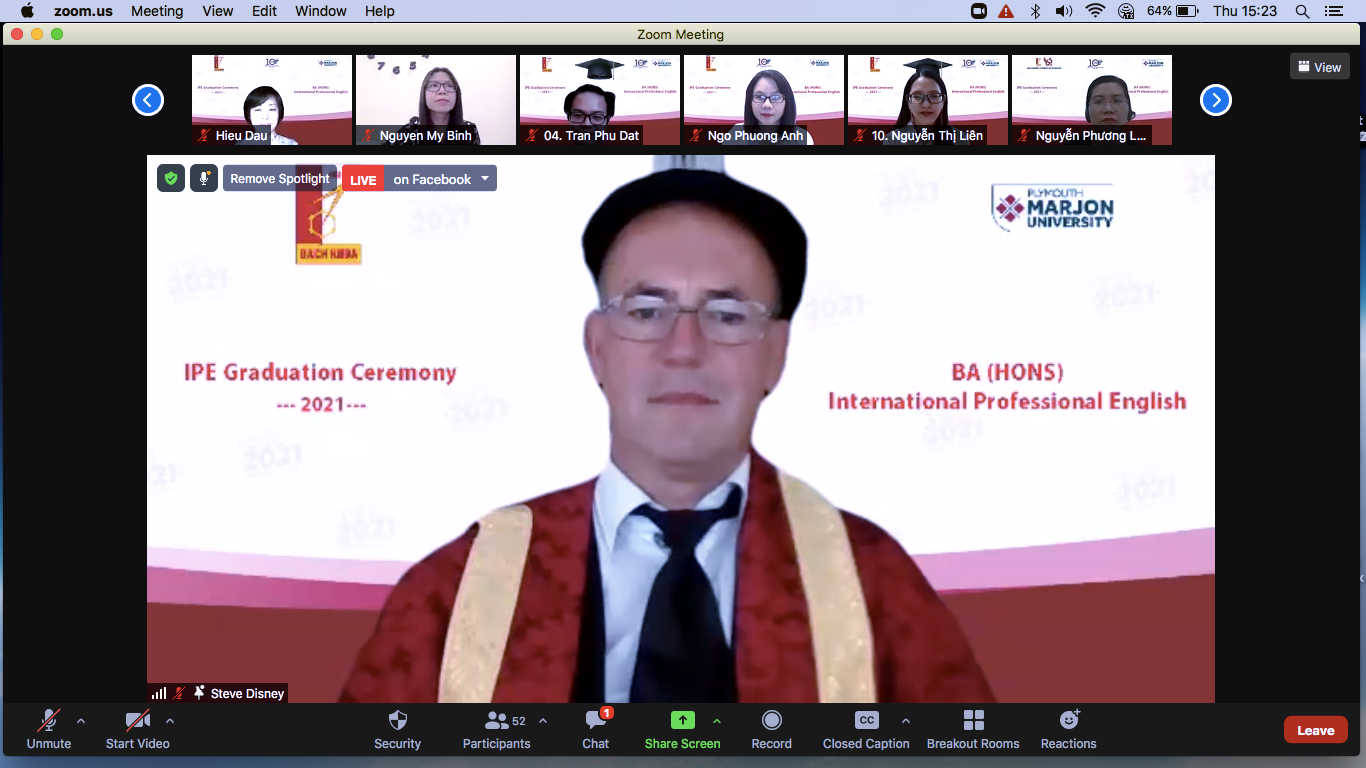 On September 16, 2021, due to the complicated developments of the Covid-19 pandemic in Vietnam and around the world, the graduation ceremony for the brand-new Cohort 7 graduates of the International Professional English Program was held for the first time on Zoom. More remarkably, the ceremony marked 10 years, a decade of cooperation between Hanoi University of Science and Technology of Vietnam and Plymouth Marjon University of the United Kingdom.