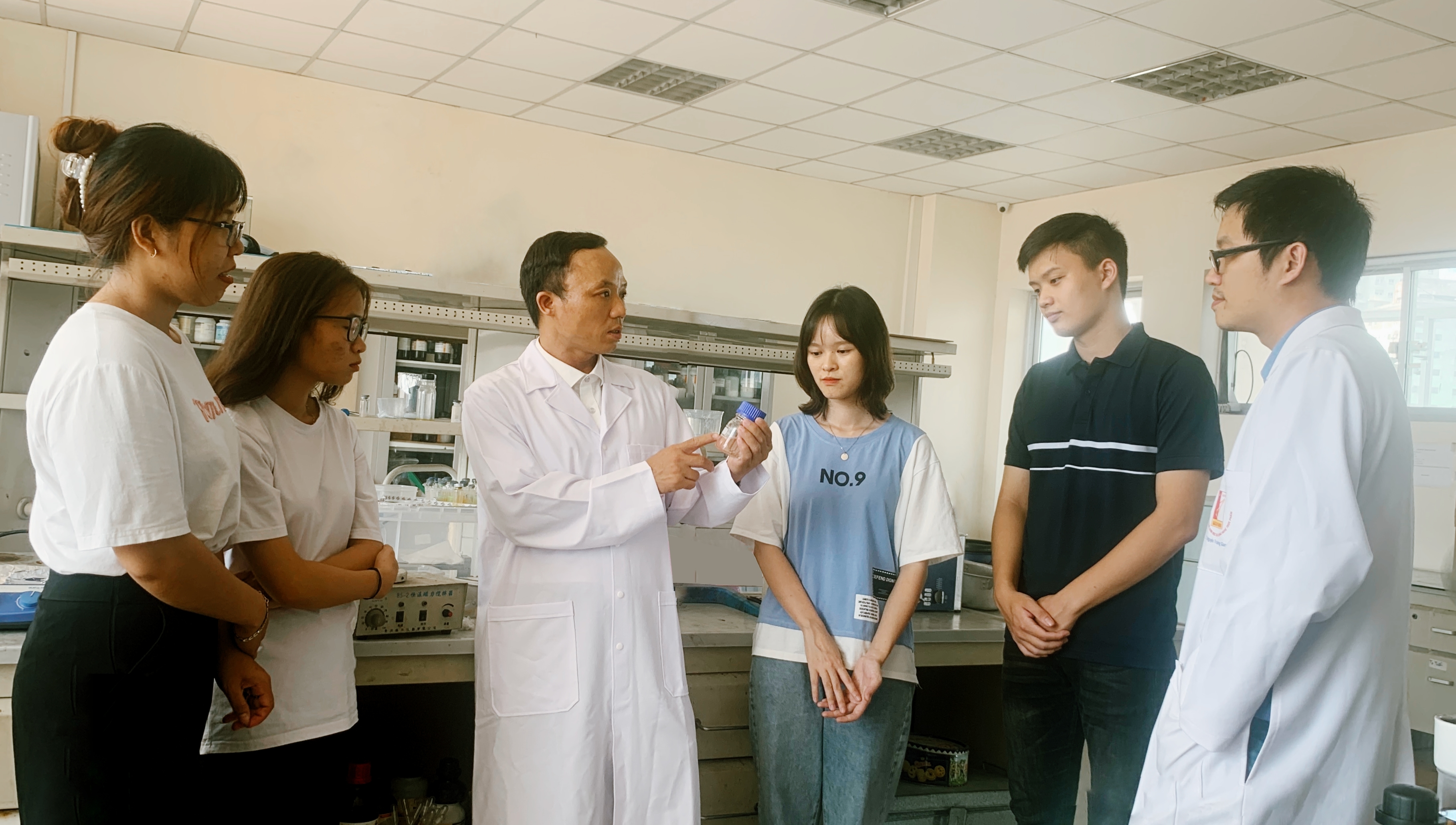 Assoc. Prof. Pham Hung Vuong and Dr. Nguyen Truong Giang guide students at the laboratory