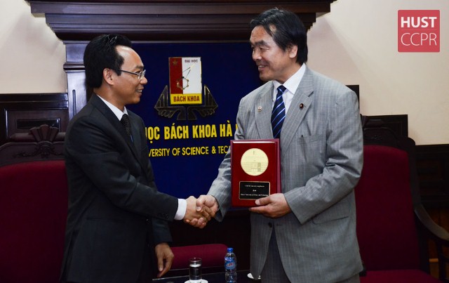 At the meeting, Minister Hiroshi Hase informed HUST about Japanese Government 5 years Strategic Plan to develop science and technology with budget up to 26.000 billion Yen, focusing on some fields, such as: ICT, medicine…. In which, scientific research and training play an important role, especially undergraduate and graduate training promotion with five important components: cooperation with Industry; cooperation and competition with universities; collaboration with local government; promotion of international cooperation, especially acceptance of foreign students; cooperation with financial and credit agency.