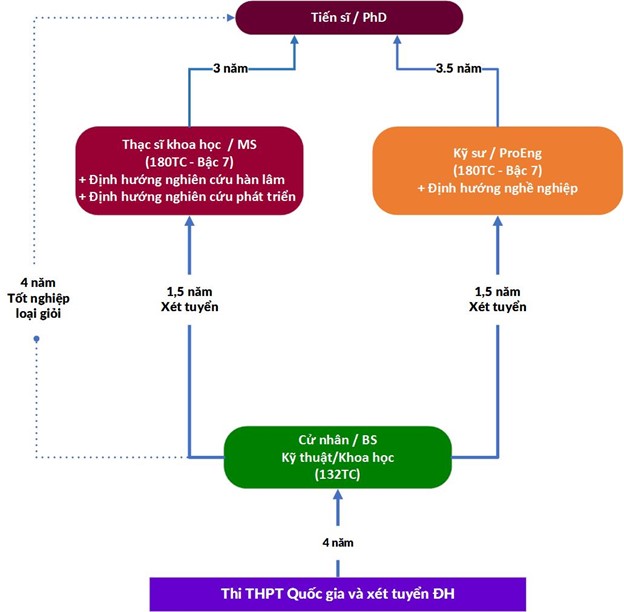 - Định hướng nghiên cứu hàn lâm, nghiên cứu phát triển với chương trình Cử nhân – Thạc sĩ khoa học 4 + 1,5 năm (áp dụng tuyển sinh và đào tạo từ năm 2017)