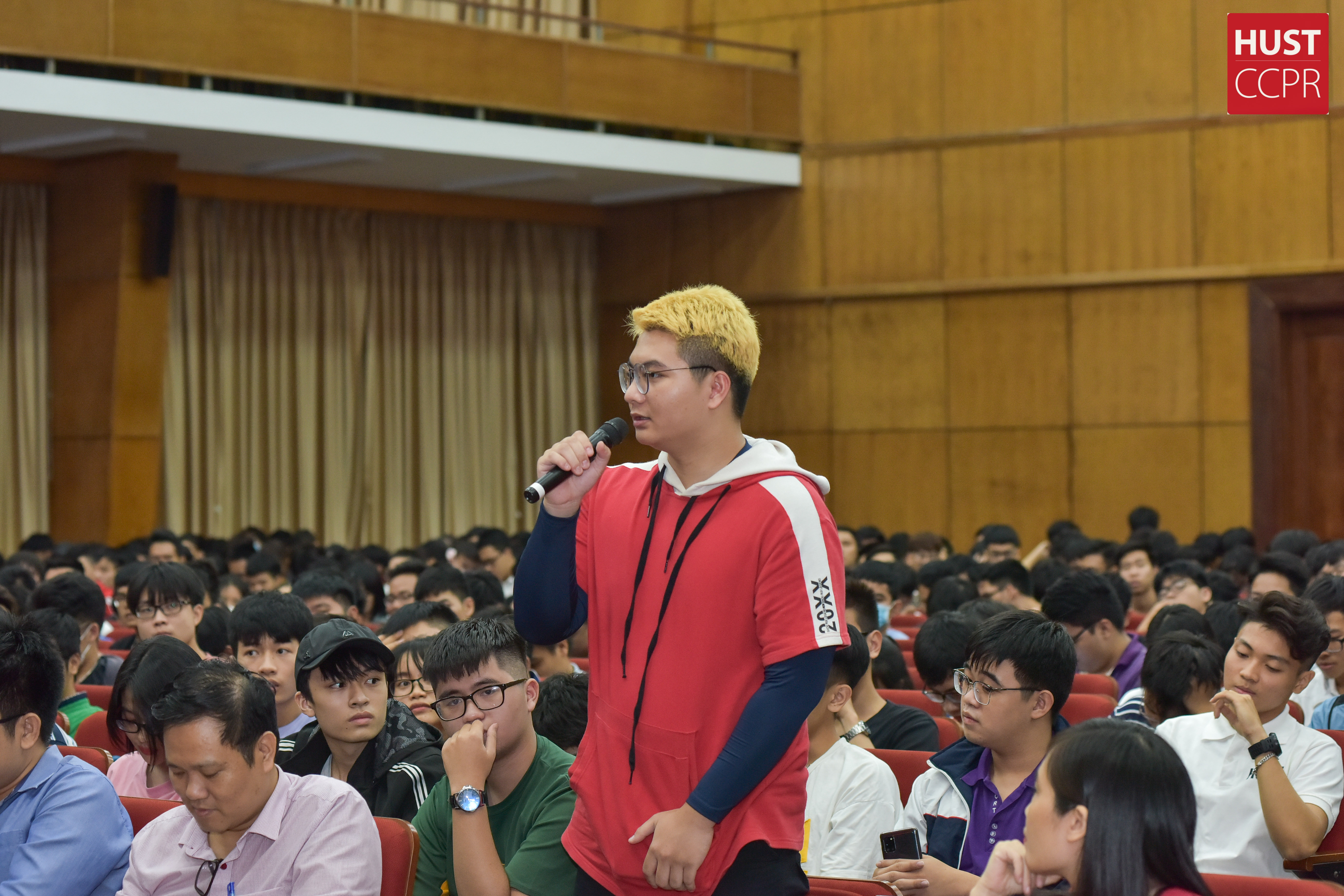 Sinh viên đặt câu hỏi tại Ngày định hướng dành cho tân sinh viên ELiTECH ngày 27/10/2020. Ảnh: CCPR-Ngọc Hải