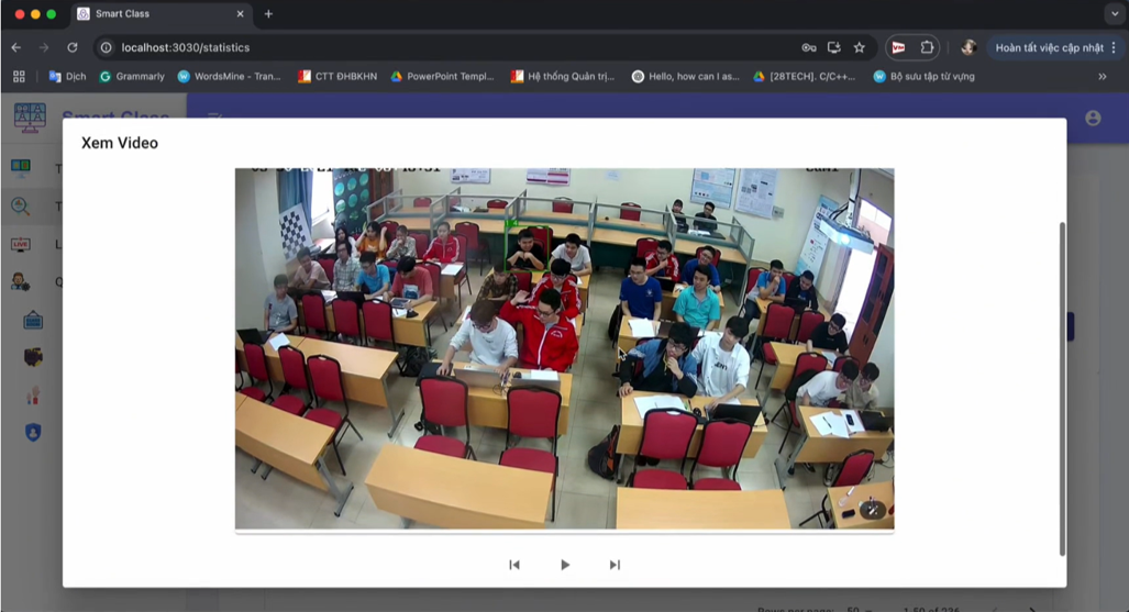 Hệ thống cho phép quản lý lớp học, camera giám sát của lớp học, xem trực tiếp luồng camera và Nhận dạng và thống kê hoạt động trong lớp học.