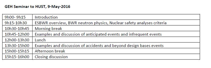 Trong khuôn khổ hợp tác giữa Trường ĐHBK Hà Nội và Tập đoàn GE Hitachi (Hoa Kỳ), Phòng Hợp tác Quốc tế tổ chức Hội nghị “ESBWR REFRESHER” tại Trường ĐHBK Hà Nội.