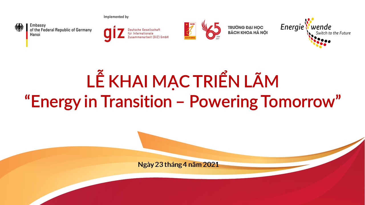 Trong khuôn khổ chuỗi các hoạt động được tổ chức nhân dịp 65 năm Kỷ niệm thành lập Trường, Trường ĐH Bách khoa Hà Nội phối hợp với Đại sứ quán CHLB Đức và Văn phòng GIZ Hà Nội đồng tổ chức sự kiện triển lãm "Energy in Transition - Powering tomorrow" mở cửa cho tất cả các đối tượng quan tâm từ ngày 22/4/2021 (thứ 5) đến ngày 27/04/2021 (thứ 3), tại Sảnh thư viện Tạ Quang Bửu, Trường ĐH Bách khoa HN.