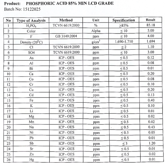 Đây là sản phẩm của nhiệm vụ nghiên cứu tối ưu hóa các thông số vận hành (tỷ lệ pha, thời gian tiếp xúc, nhiệt độ) và lựa chọn hệ dung môi tối ưu cho nguồn quặng apatit Lào Cai.