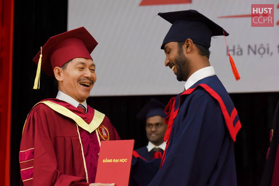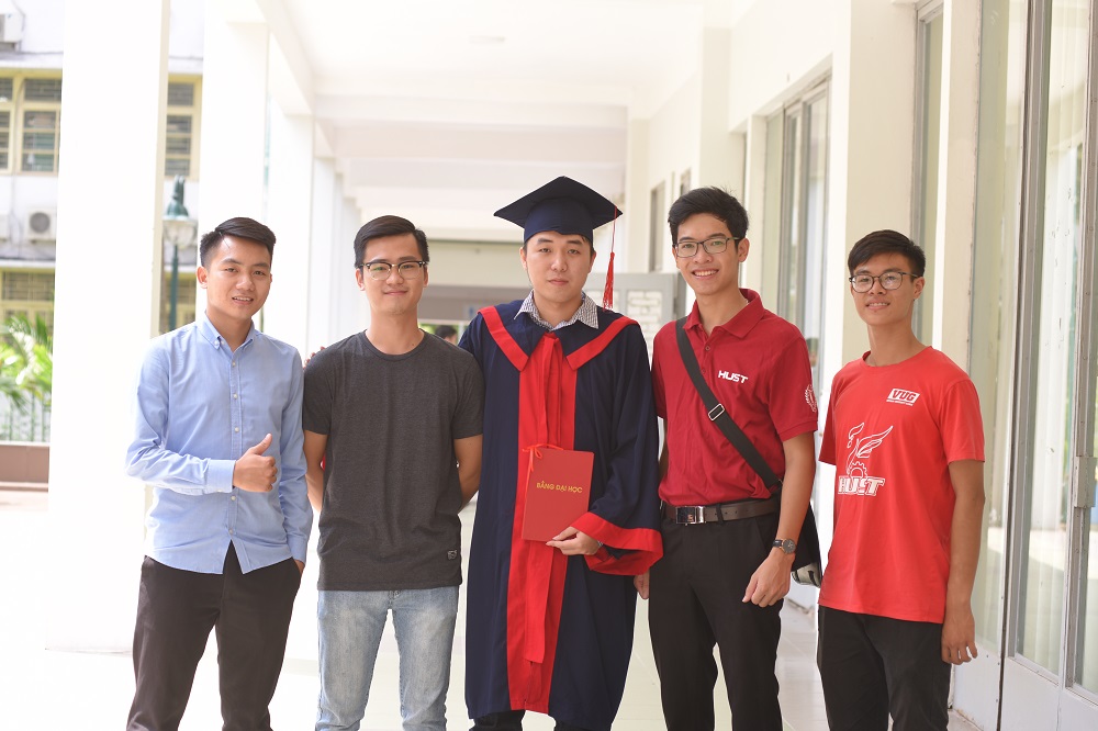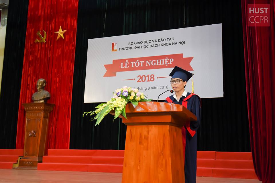 Trong niềm vui và xúc động, tân kỹ sư Nguyễn Xuân Hiến xúc động: “Năm năm đại học đã khép lại, để lại trong em bao kỉ niệm khó quên. Từ những bài giảng đầy nhiệt huyết của thầy cô trên bục giảng, những buổi ôn thi ở một góc thư viện đến những buổi thức đêm làm bài tập lớn, những lần ngủ gật trong giờ, những người bạn tốt luôn sát cánh ở bên sẽ là những kỷ niệm của tuổi thanh xuân, của tình yêu dành cho Bách khoa Hà Nội. Thay mặt các bạn sinh viên tốt nghiệp ngày hôm nay, em xin bày tỏ lòng biết ơn tới các thầy cô, đã tạo điều kiện cho chúng em có môi trường tốt để học tập và phát triển, đã trang bị cho chúng em những hành trang, chắp cho chúng em những đôi cách, để chúng em có thể bay cao, bay xa. Nhưng dù bay cao đến đâu, xa đến đâu, chúng em vẫn sẽ mãi nhớ về ngôi nhà thứ hai của mình mang tên Bách khoa Hà Nội. Chúng em xin hứa sẽ vận dụng những kiến thức được đào tạo đóng góp vào sự nghiệp xây dựng và phát triển đất nước, để luôn xứng đáng với thương hiệu là sinh viên Đại học Bách khoa Hà Nội.”