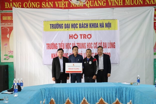 Ngày 01/12/2020, tại thôn Đá Nổi, xã Ba Lòng, huyện Dakrông, tỉnh Quảng Trị, Trường Đại học Bách khoa Hà Nội trực tiếp trao tặng các trang thiết bị, đồ dùng dạy học gồm 10 bộ máy tính để bàn, 05 màn hình tivi, 36 bộ bàn ghế học sinh, 05 bộ bàn ghế giáo viên và 455 cặp học sinh cho Trường Tiểu học và THCS Ba Lòng, huyện Dakrông, tỉnh Quảng Trị và các em học sinh của Trường với tổng trị giá gần 300 triệu đồng.