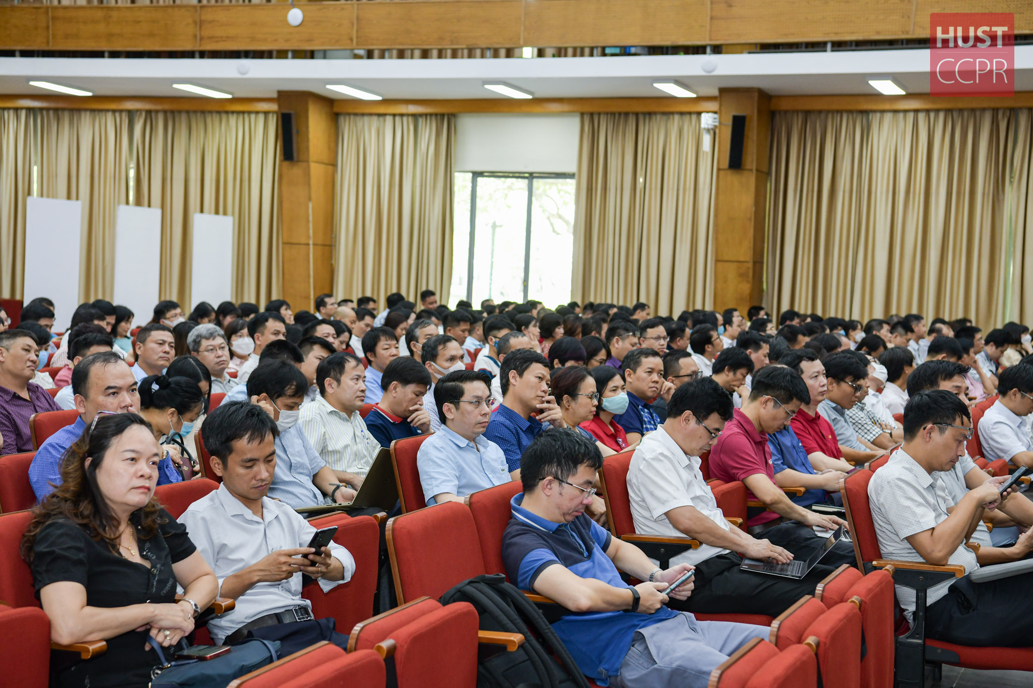 Tọa đàm thu hút sự quan tâm của gần 500 cán bộ quản lý Trường Đại học Bách khoa Hà Nội. Ảnh: Duy Thành