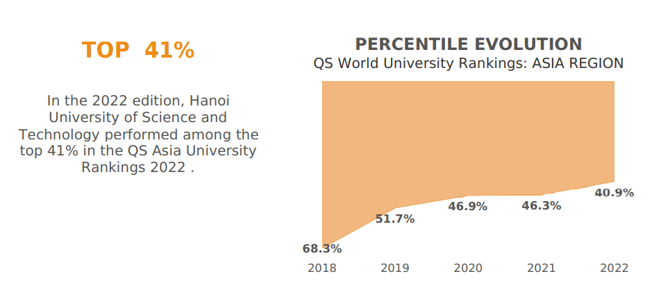 Theo bảng xếp hạng các trường đại học châu Á năm 2022 của tổ chức giáo dục Quacquarelli Symonds (QS) công bố ngày 2/11, Trường Đại học Bách khoa Hà Nội giữ vị trí 281-290, nằm trong tốp 41% các trường đại học được xếp hạng.