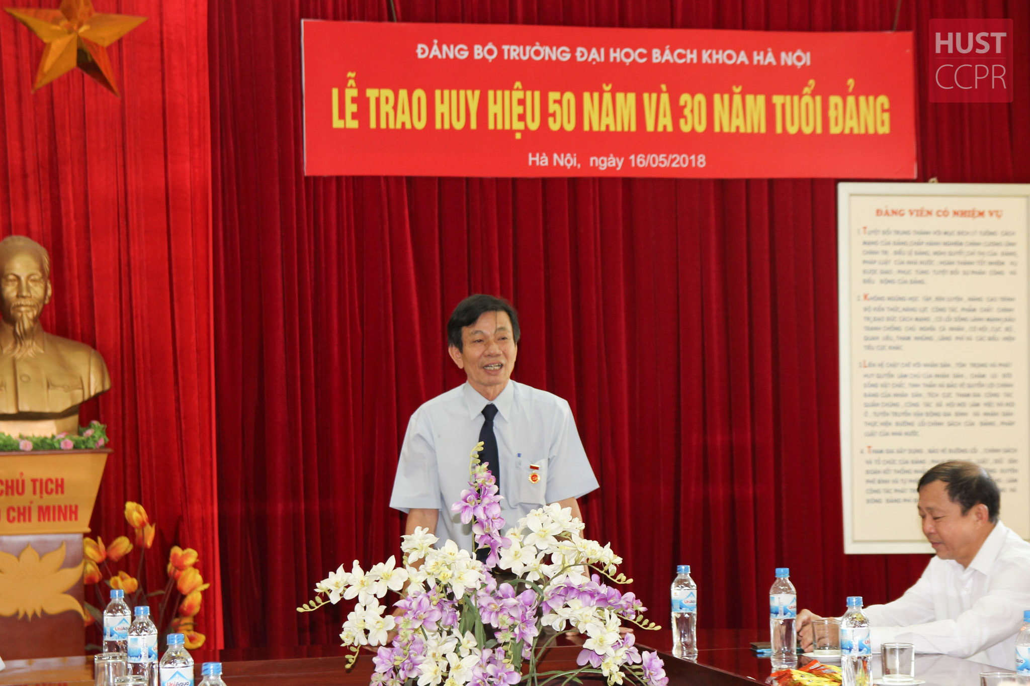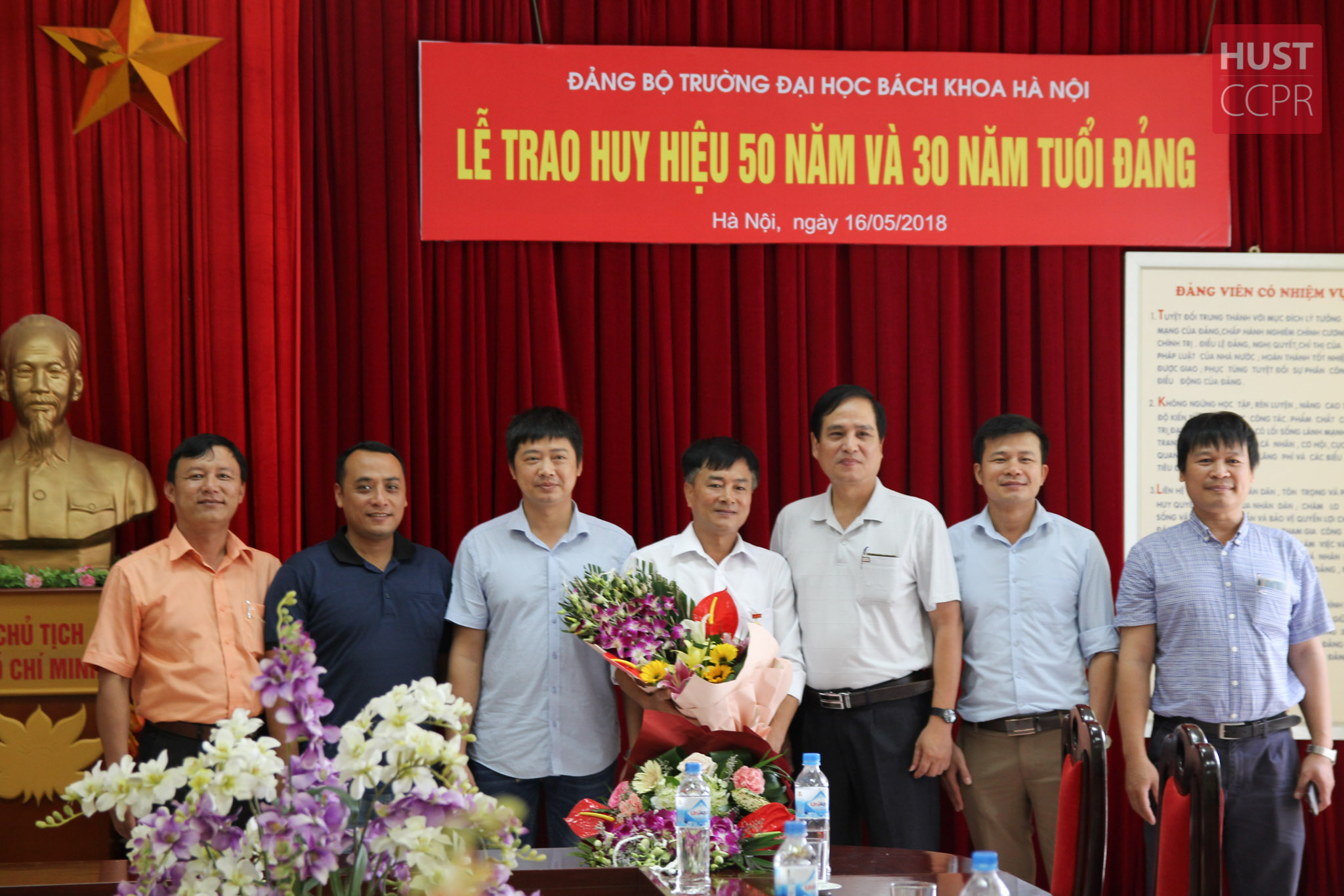 Buổi lễ có sự hiện diện của đồng chí Nguyễn Văn Khang – Phó Bí thư Đảng ủy, Phó Hiệu trưởng Trường ĐHBK Hà Nội và các đồng chí trong Thường vụ Đảng ủy Trường; đại diện cấp ủy tại các Đảng bộ bộ phận, chi bộ trong Trường cùng 4 đồng chí vinh dự được nhận Huy hiệu 50 năm và 30 năm tuổi Đảng.