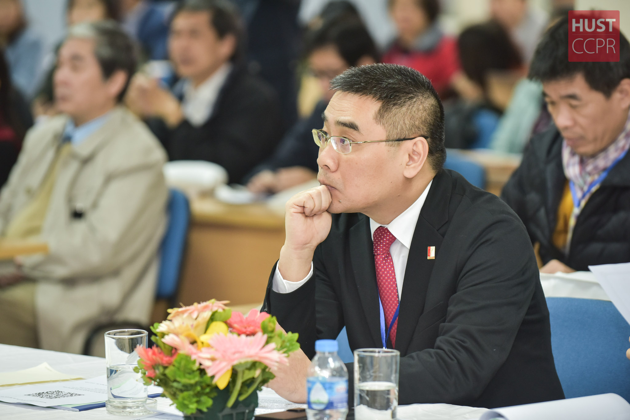PGS. Huỳnh Đăng Chính, Phó hiệu trưởng Trường Đại học Bách khoa Hà Nội, tham dự Hội nghị Khoa học Toàn quốc về Dệt, May và Da Giày lần thứ 2 tổ chức vào ngày 15/1 tại Thư viện Tạ Quang Bửu. Ảnh: Duy Thành.