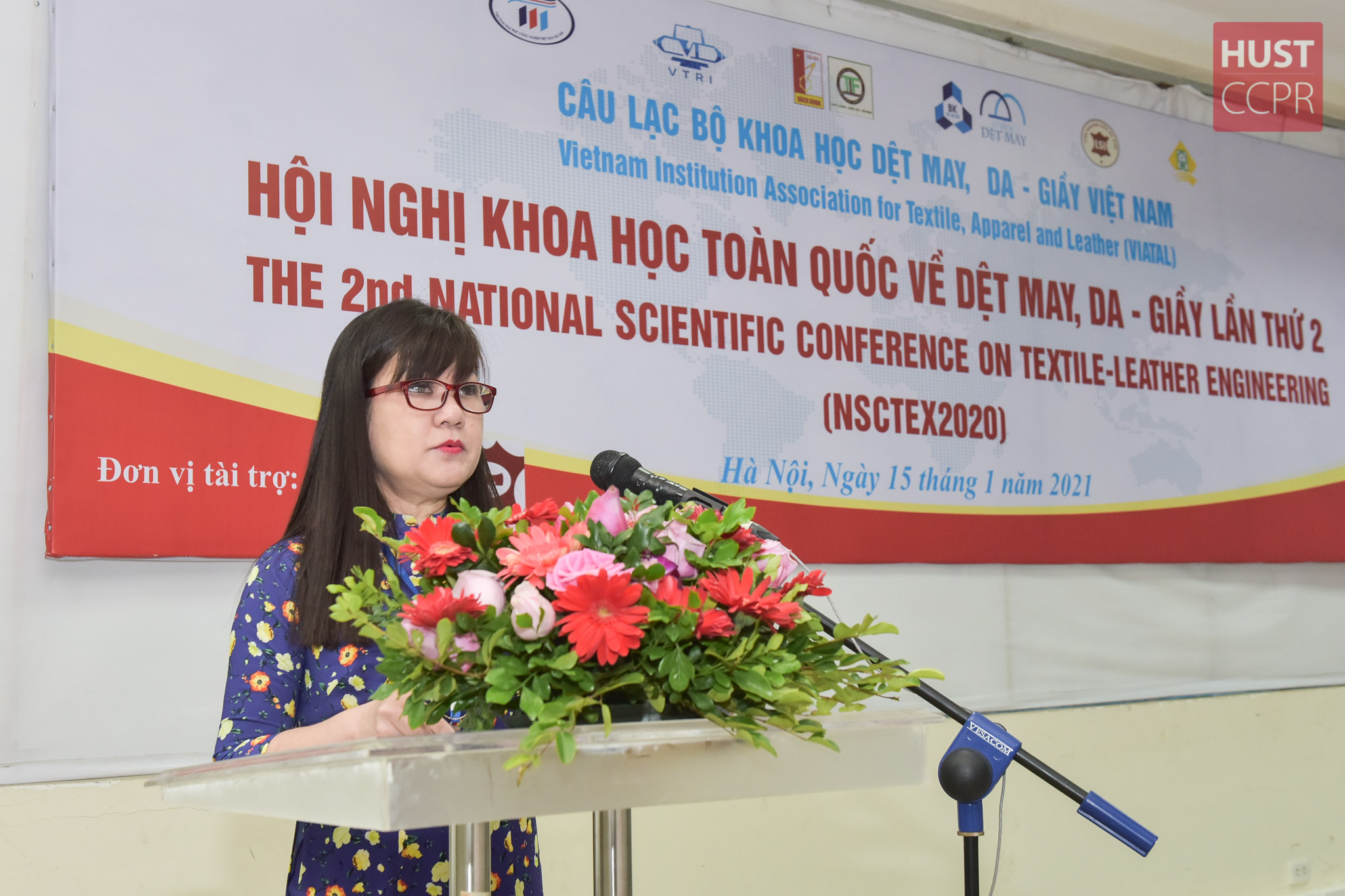 PGS. Phan Thanh Thảo, Viện trưởng Viện Dệt May - Da Giày và Thời Trang, phát biểu tại Hội nghị Khoa học Toàn quốc về Dệt, May và Da Giày lần thứ 2 tổ chức vào ngày 15/1 tại Thư viện Tạ Quang Bửu. Ảnh: Duy Thành.