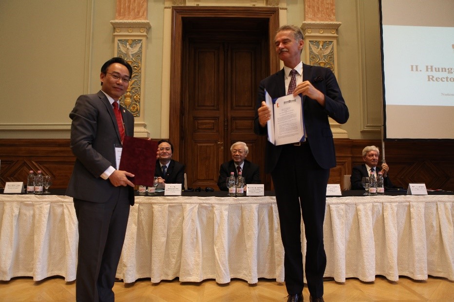 Tiêu điểm của chuyến công tác là Hội nghị Hiệu trưởng các Trường Đại học Việt Nam - Hungary lần thứ II diễn ra vào ngày 11/9/2018 nhân dịp chuyến thăm Hungary của Tổng Bí thư Nguyễn Phú Trọng, với sự tham dự của 28 trường ĐH Việt Nam và 20 trường ĐH Hungary tại thủ đô Budapest. Phát biểu tại Phiên Khai mạc, Tổng Bí thư cho biết: “[…] Trong những năm gần đây, quan hệ hợp tác giữa Việt Nam và Hungary trên lĩnh vực giáo dục - đào tạo không ngừng được củng cố, phát triển, đi vào trọng tâm và đạt được nhiều kết quả trên tất cả các mặt. Việt Nam đặc biệt đánh giá cao và cảm ơn Chính phủ Hungary đã dành 200 suất học bổng mỗi năm cho sinh viên Việt Nam trong các ngành học ở tất cả các trình độ đào tạo mà Hungary có thế mạnh”.