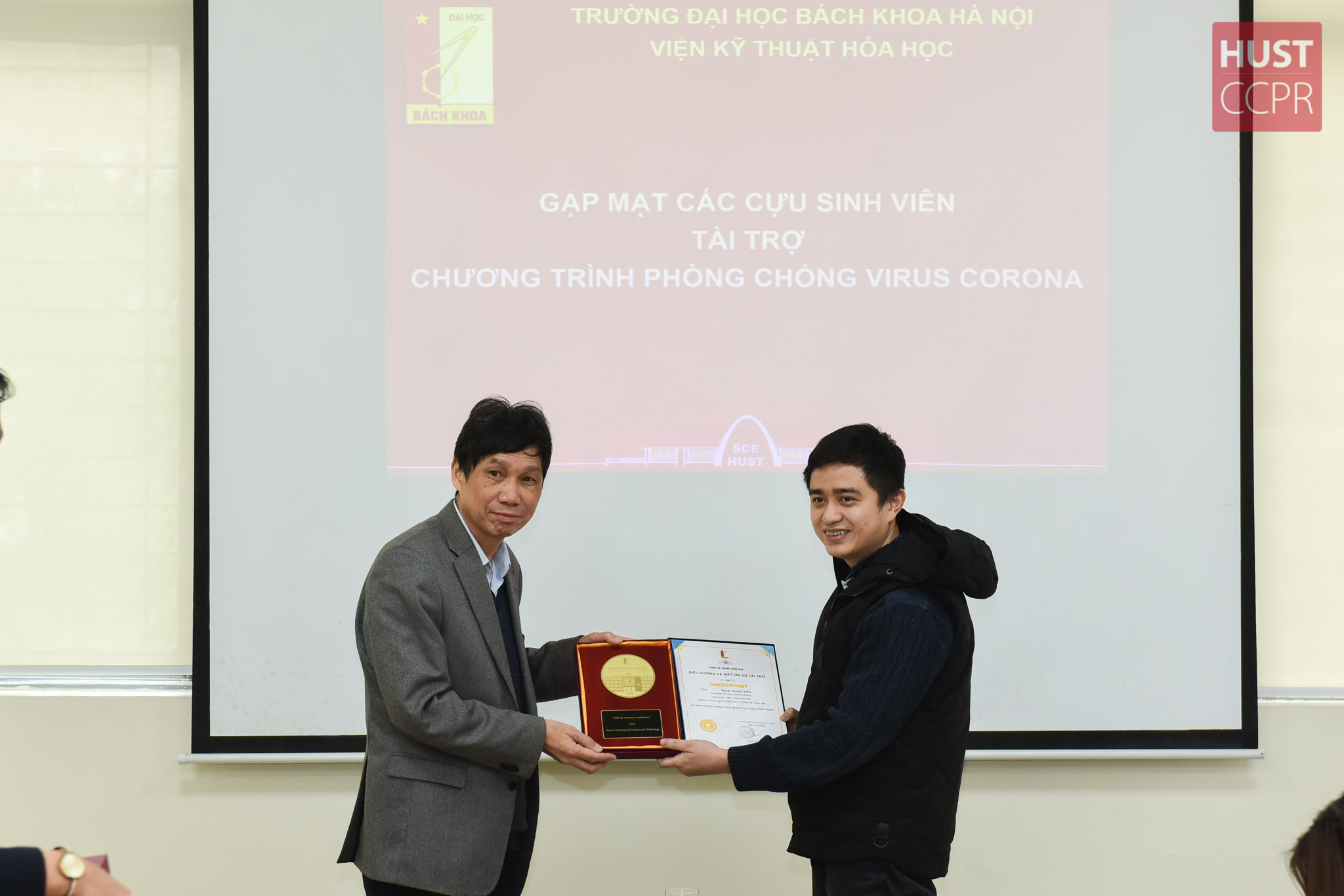 GS Đinh Văn Phong trân trọng trao tặng món quà lưu niệm của Nhà trường cảm ơn các tấm lòng của các cựu sinh viên đồng thời nhấn mạnh: “Sự trợ giúp, kết nối chặt chẽ của các cựu sinh viên vừa phù hợp với chiến lược gắn kết cựu sinh viên – những tài sản quý giá của ĐH Bách khoa Hà Nội, vừa theo đúng phương châm chỉ đạo “4 tại chỗ, 3 sẵn sàng” trong phòng chống dịch bệnh của Chính phủ. Chỉ có yêu mến ngôi trường của mình, các cựu sinh viên mới không nề hà góp sức cùng các thầy cô phòng, chống dịch bệnh. Các bạn là tấm gương sáng, truyền tình yêu Trường cho các sinh viên đang theo học tại ngôi trường số 1 cả nước về Khoa học và Công nghệ”.