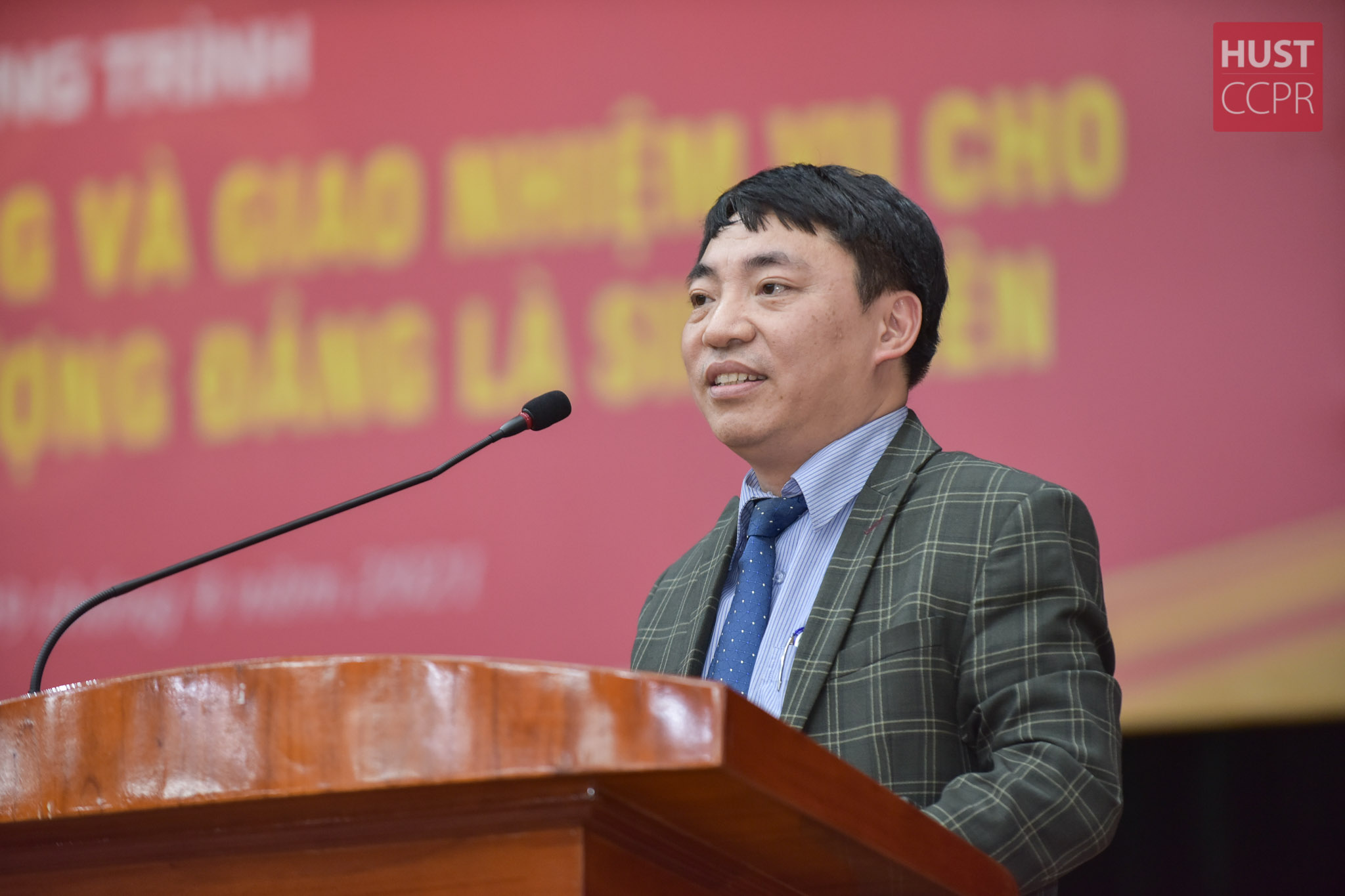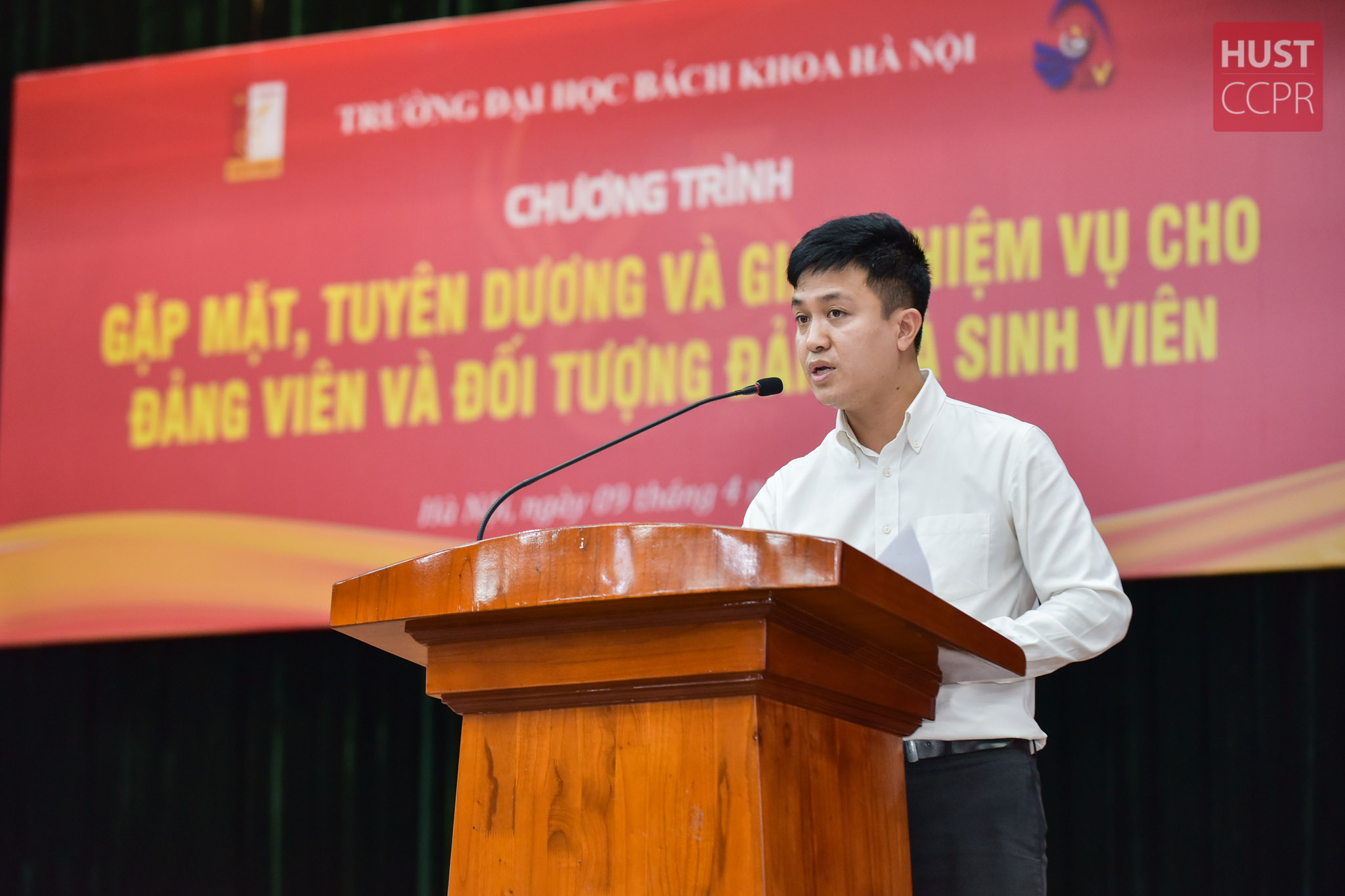 Cuối buổi lễ, đại diện Đảng uỷ Trường ĐH Bách khoa Hà Nội, PGS. Trần Ngọc Khiêm đã chúc mừng, biểu dương những thành tích tiêu biểu của các bạn là Đảng viên, Đối tượng Đảng. Đồng chí cho biết: “Trách nhiệm của tổ chức Đoàn trong giáo dục, rèn luyện đảng viên trẻ là rất quan trọng. Và với mỗi đảng viên trẻ cũng cần tự giác nhận thức được đâu là việc làm thiết thực; nêu cao tính tiên phong, gương mẫu rèn đức luyện tài sẽ đóng góp nhiều hơn nữa trong tương lai.”
