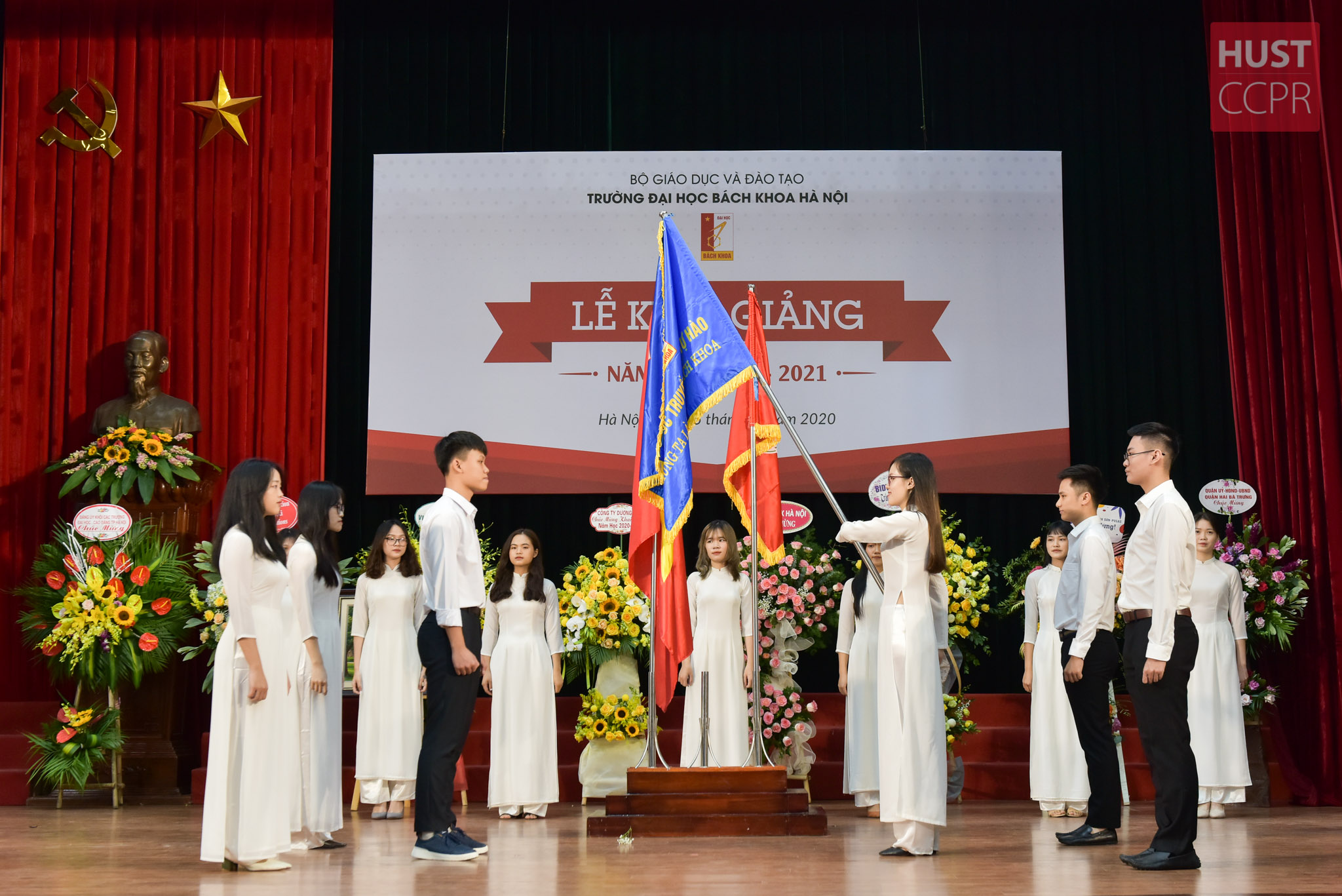 Lễ trao cờ truyền thống tại Lễ khai giảng ĐH Bách khoa Hà Nội ngày 15/10/2020. Ảnh: CCPR