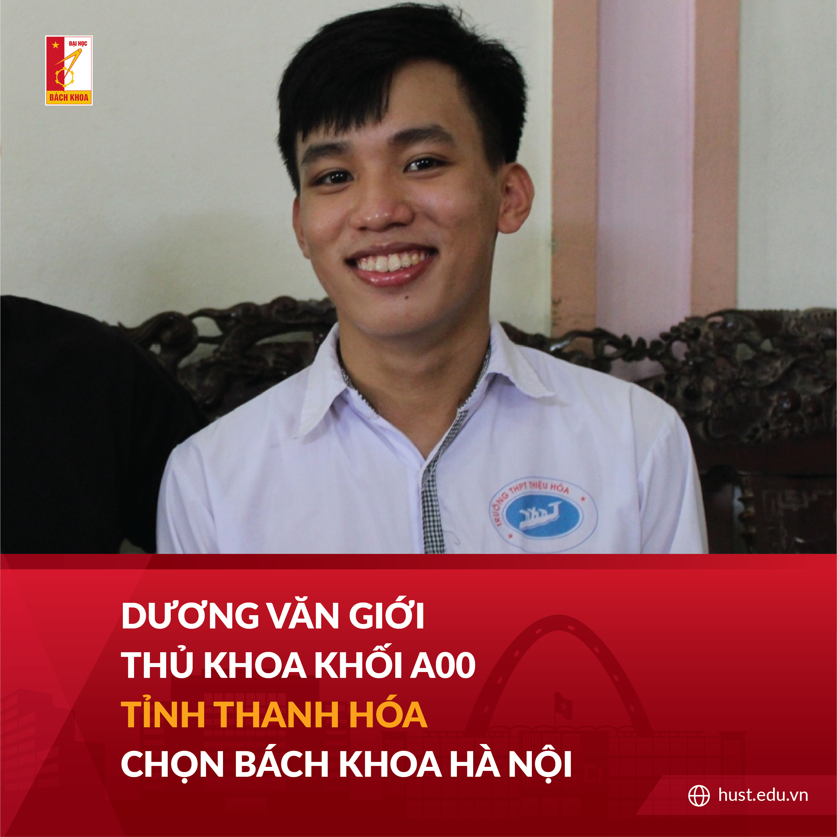 Thủ khoa khối A năm 2021 tỉnh Thanh Hóa - Dương Văn Giới cũng lựa chọn Đại học Bách khoa Hà Nội để bước tiếp những ngày tháng “tuổi xanh”.