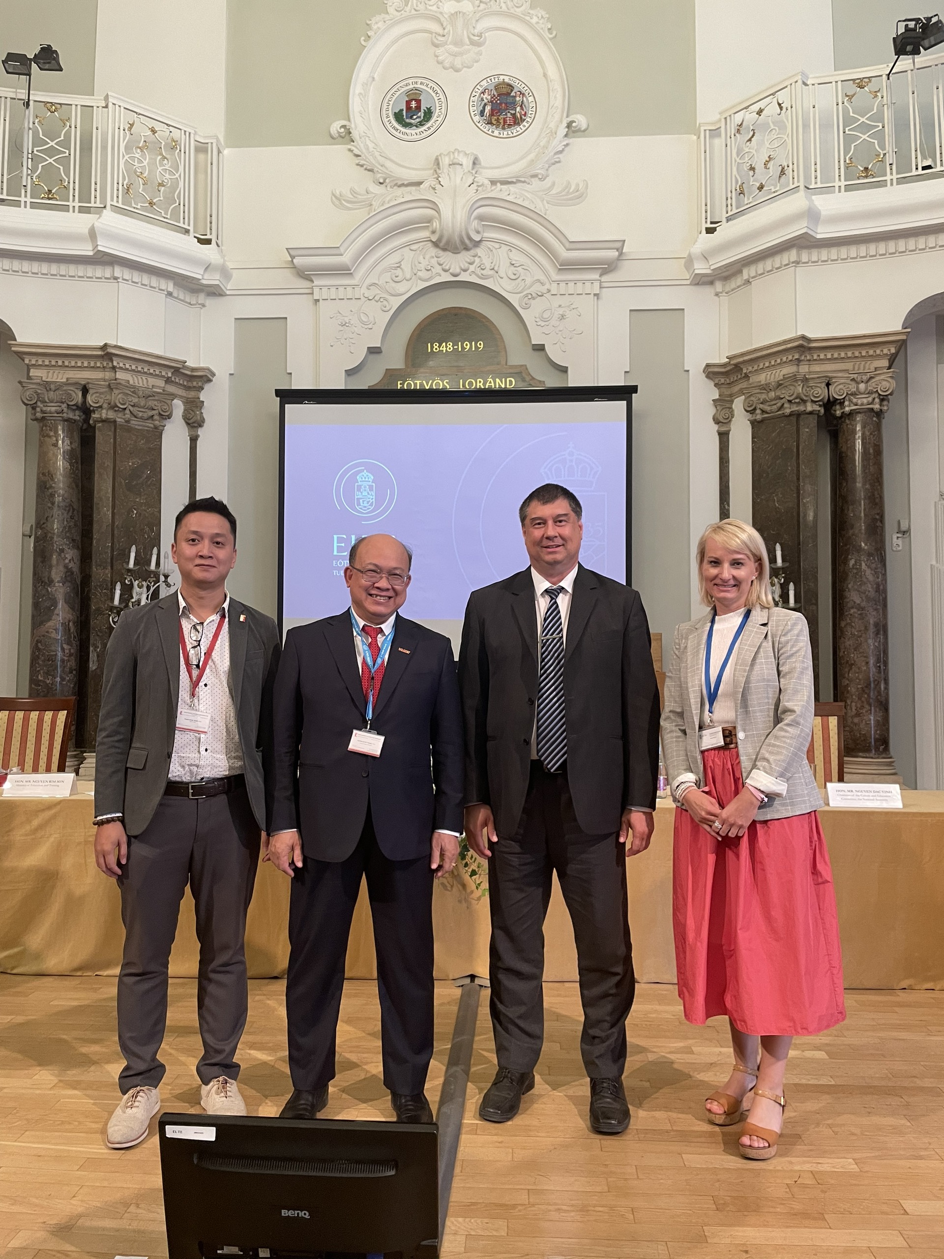 PGS. Huỳnh Quyết Thắng (thứ 2 từ trái qua) chụp ảnh lưu niệm cùng các đại biểu Hungarry tham dự Diễn đàn
