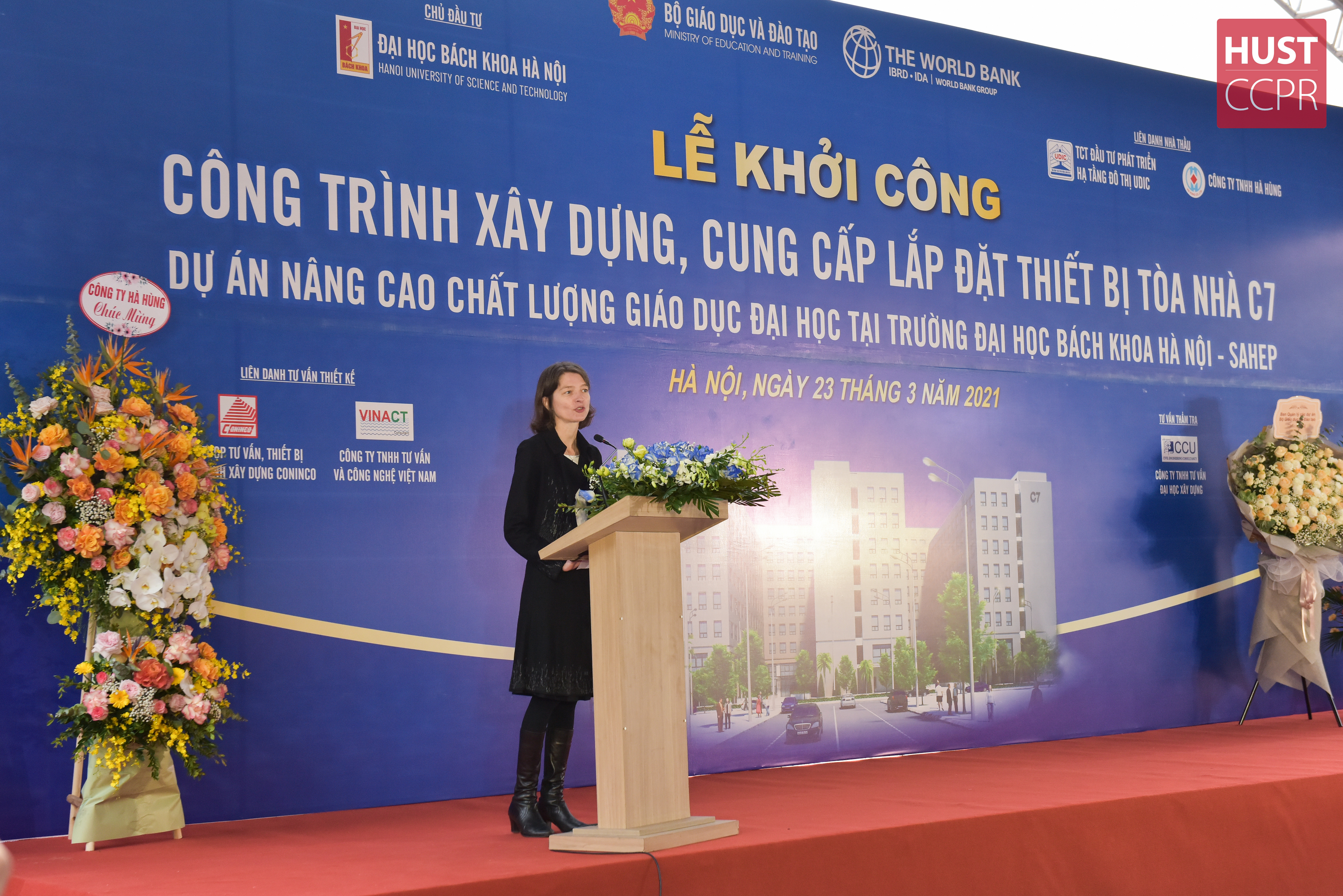 Đại diện WB, bà Steffi Stallmeister ghi nhận những nỗ lực, cố gắng vượt qua khó khăn để triển khai Dự án SAHEP của lãnh đạo, cán bộ, giảng viên Trường Đại học Bách khoa Hà Nội; đồng thời bày tỏ hy vọng dự án sẽ nâng cao chất lượng đào tạo, giúp ghi dấu Đại học Bách khoa Hà Nội trên bản đồ giáo dục đại học thế giới.