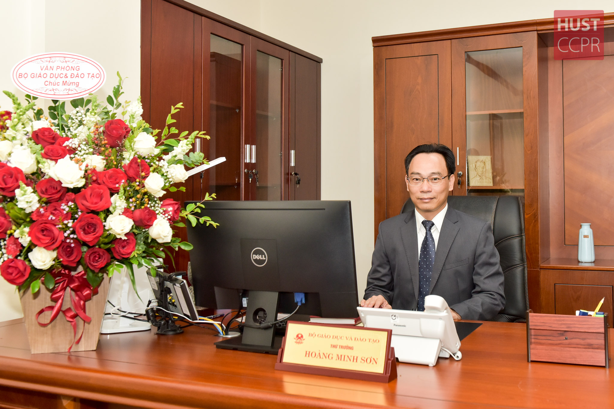 Thứ trưởng Bộ Giáo dục và Đào tạo Hoàng Minh Sơn tại phòng làm việc sau lễ công bố quyết định bổ nhiệm của Thủ tướng Chính phủ ngày 8/10. Ảnh: CCPR-Duy Thành.
