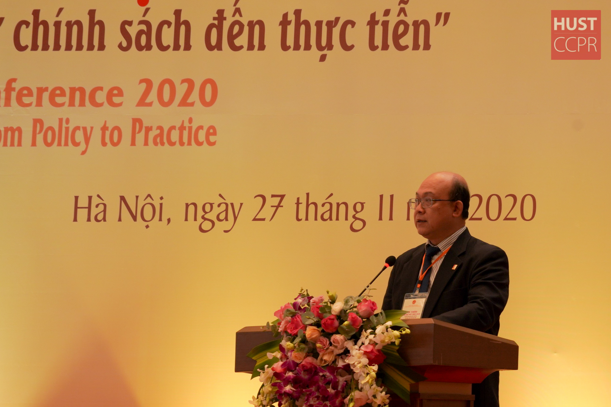 PGS. Huỳnh Quyết Thắng, Hiệu trưởng Trường Đại học Bách khoa Hà Nội, phát biểu tại Hội thảo Giáo dục Việt Nam 2020 với tư cách người điều phối phiên thảo luận về "Thể chế tự chủ trong giáo dục đại học". Ảnh: CCPR - Hạnh Phạm.