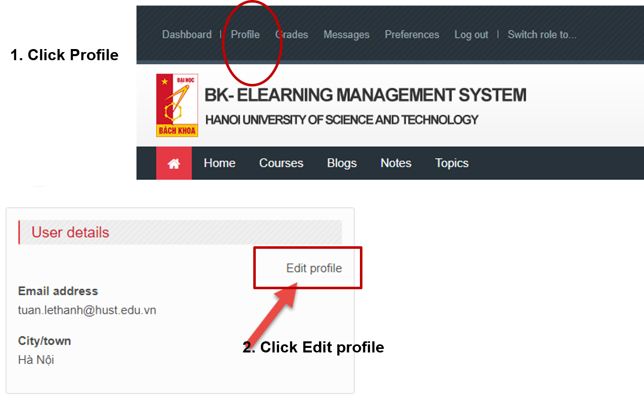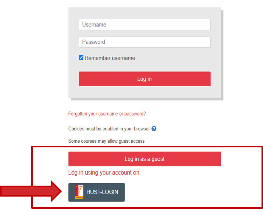 Bước 1: Đăng nhập hệ thống LMS tại địa chỉ http://lms.hust.edu.vn