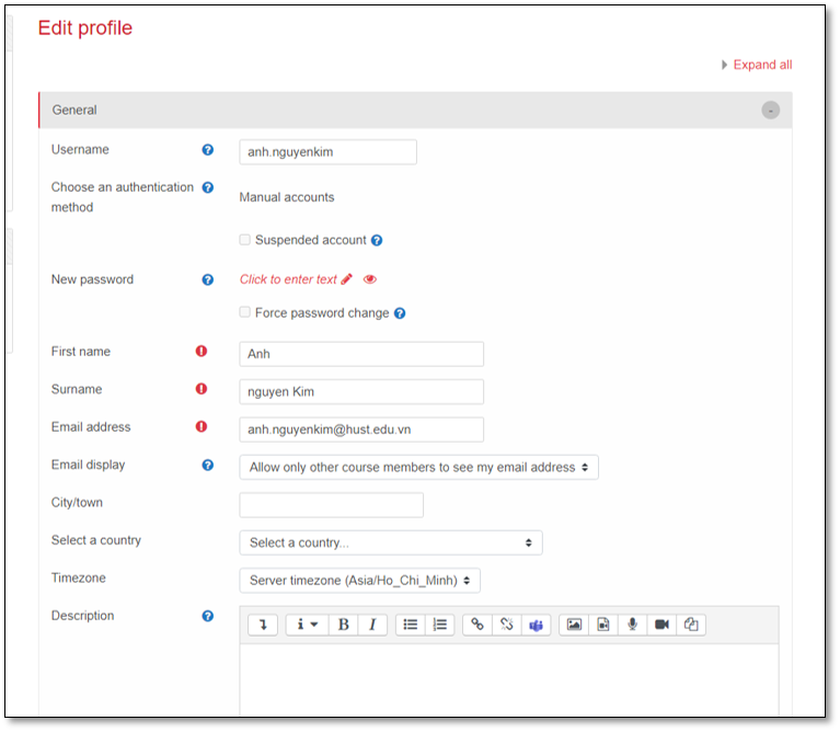 Bước 1. Chỉnh sửa thông tin cá nhân sau lần đăng nhập đầu tiên