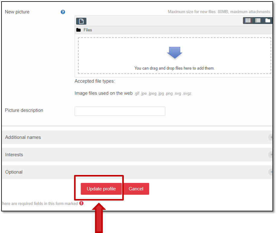 Bước 2. Update profile hoàn tất việc chỉnh sửa