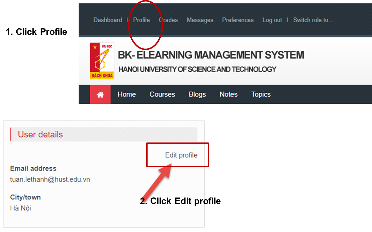 Bước 1. Chỉnh sửa thông tin cá nhân sau lần đăng nhập đầu tiên