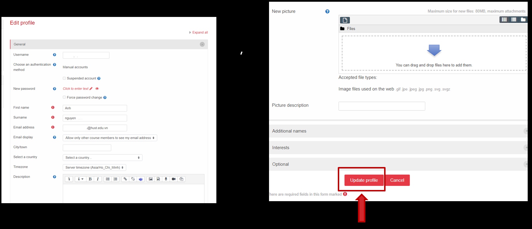 Bước 2. Update profile hoàn tất việc chỉnh sửa