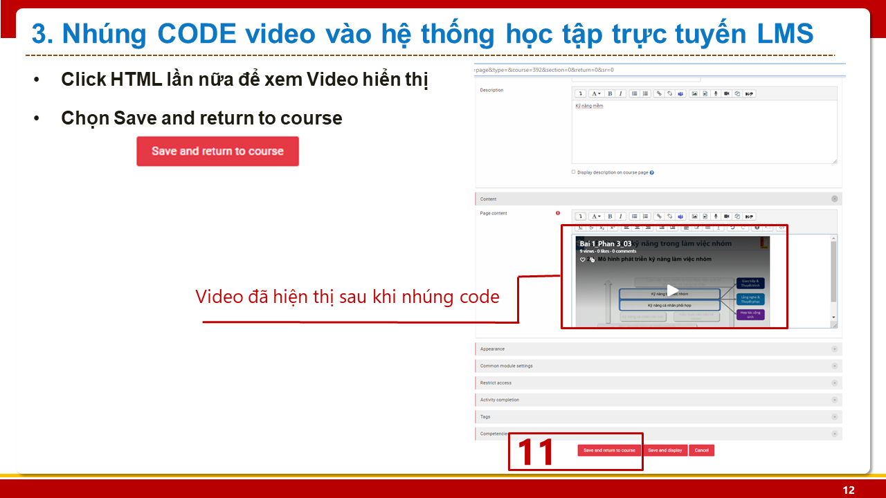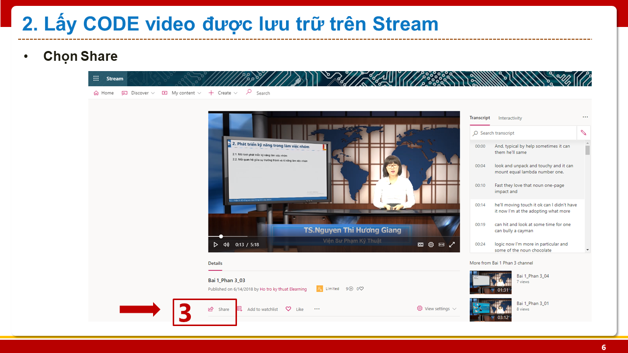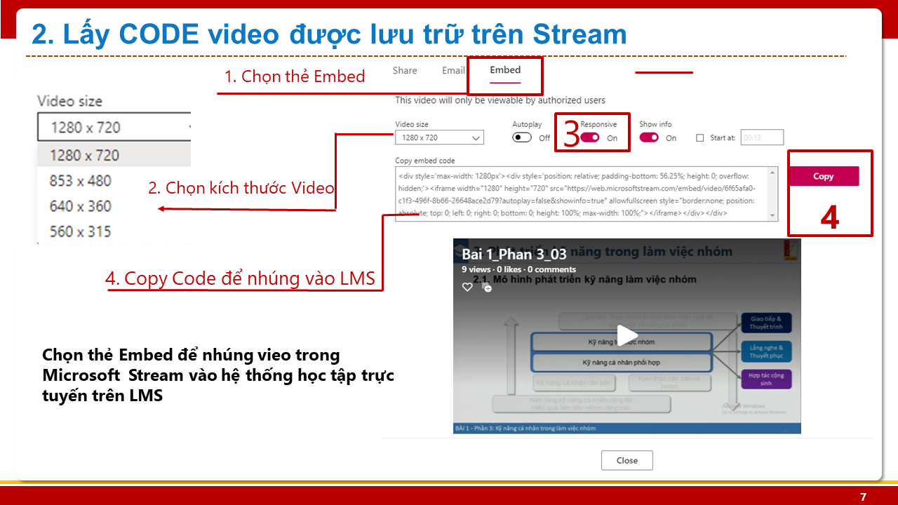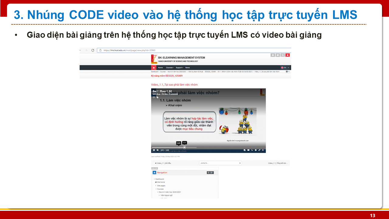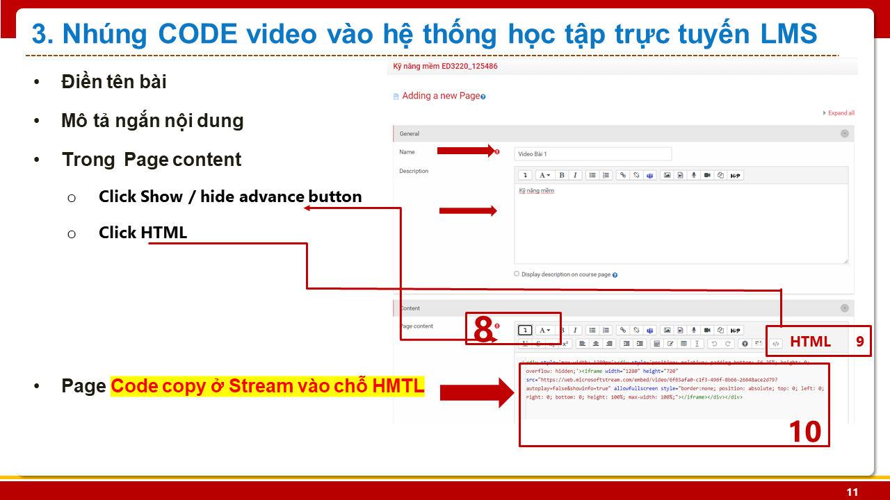 HƯỚNG DẪN GIẢNG VIÊN NHÚNG VIDEO TRÊN STREAM VÀO LMS