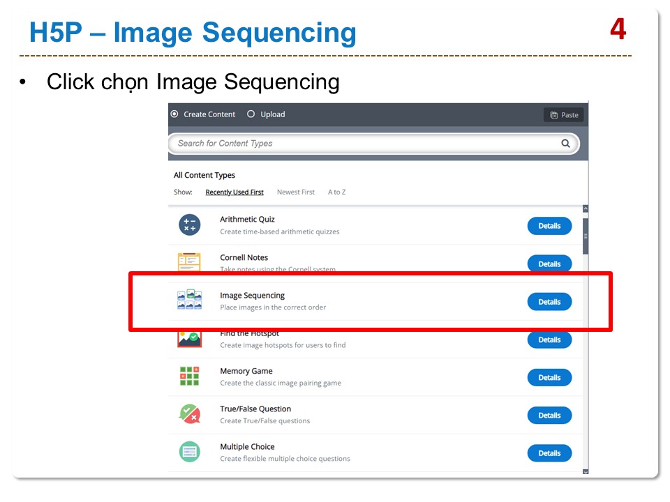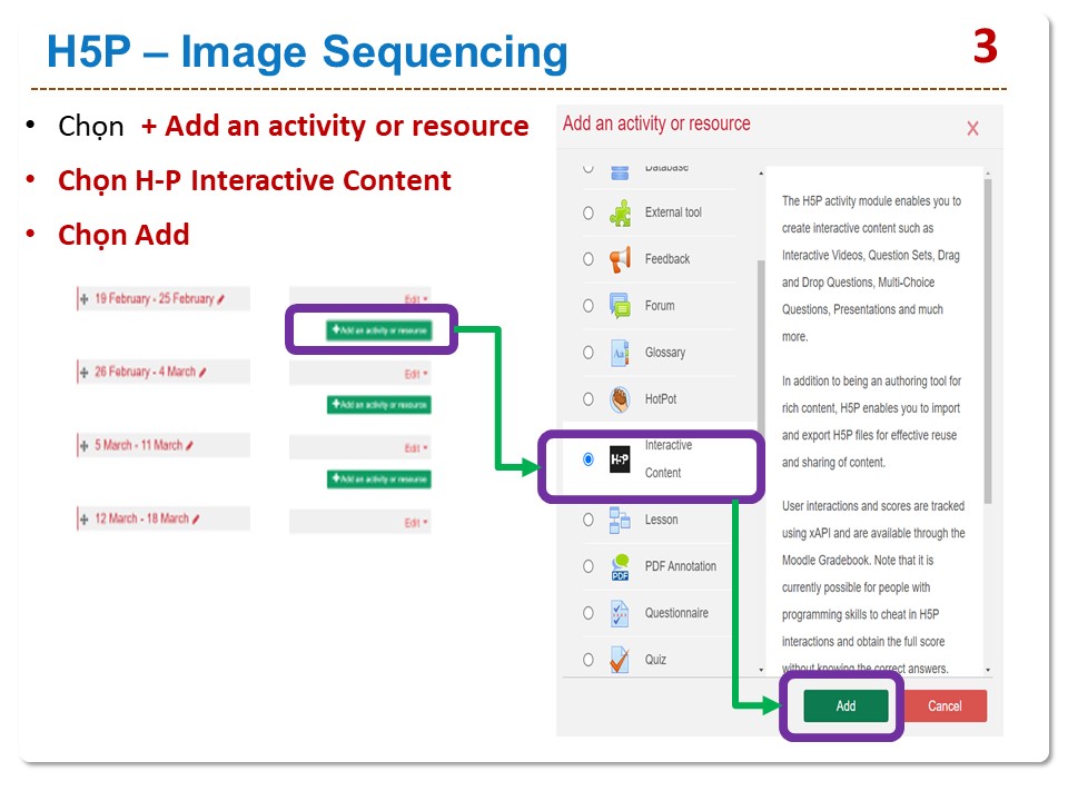 HƯỚNG DẪN GIẢNG VIÊN SỬ DỤNG H5P ĐÊ TẠO IMAGE SEQUENCING