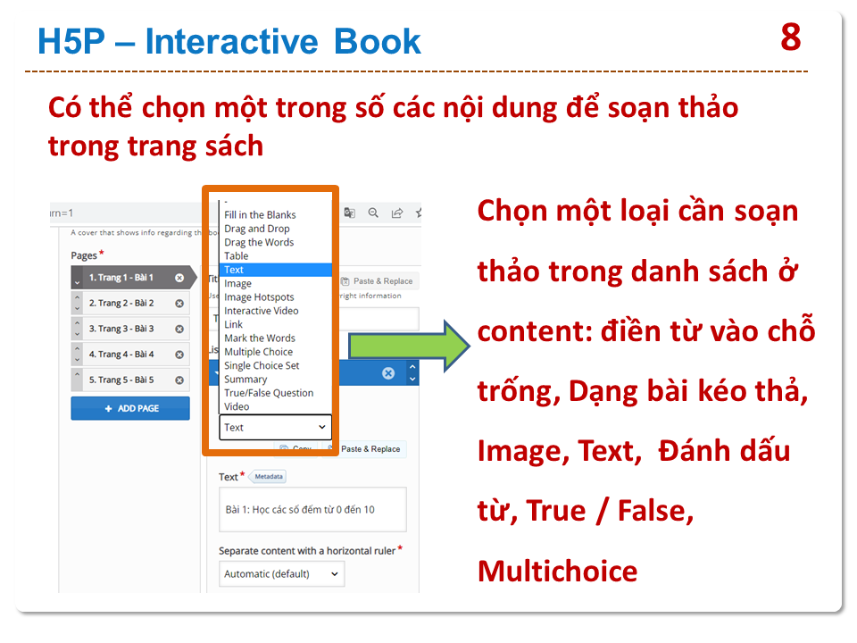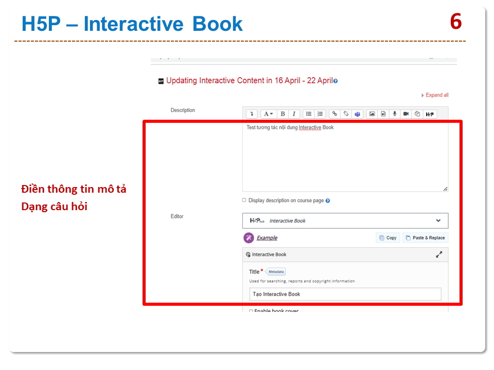 HƯỚNG DẪN GIẢNG VIÊN SỬ DỤNG H5P TẠO INTERACTIVE BOOK