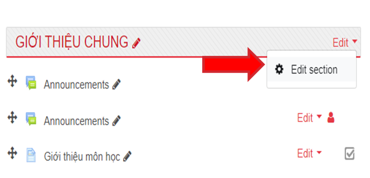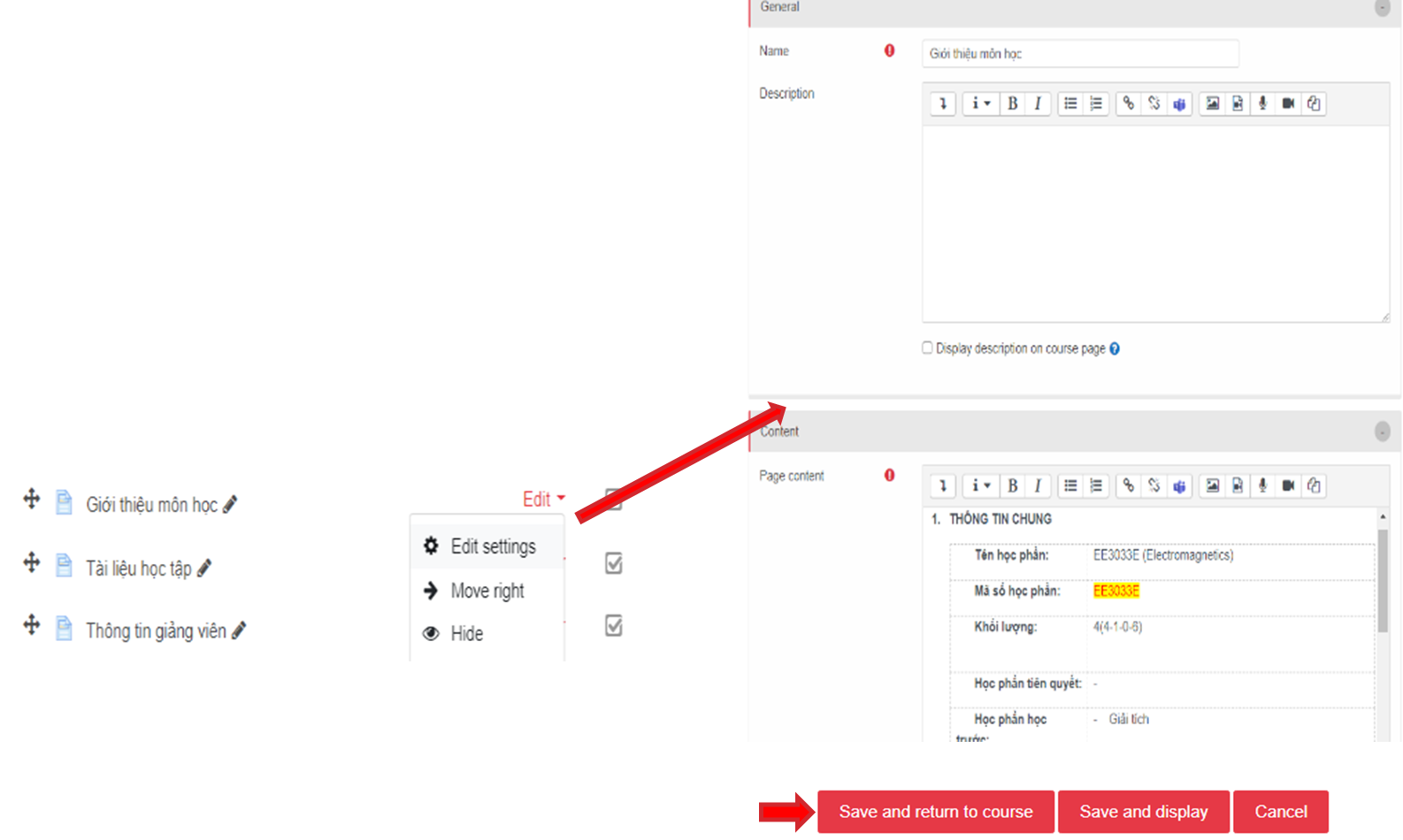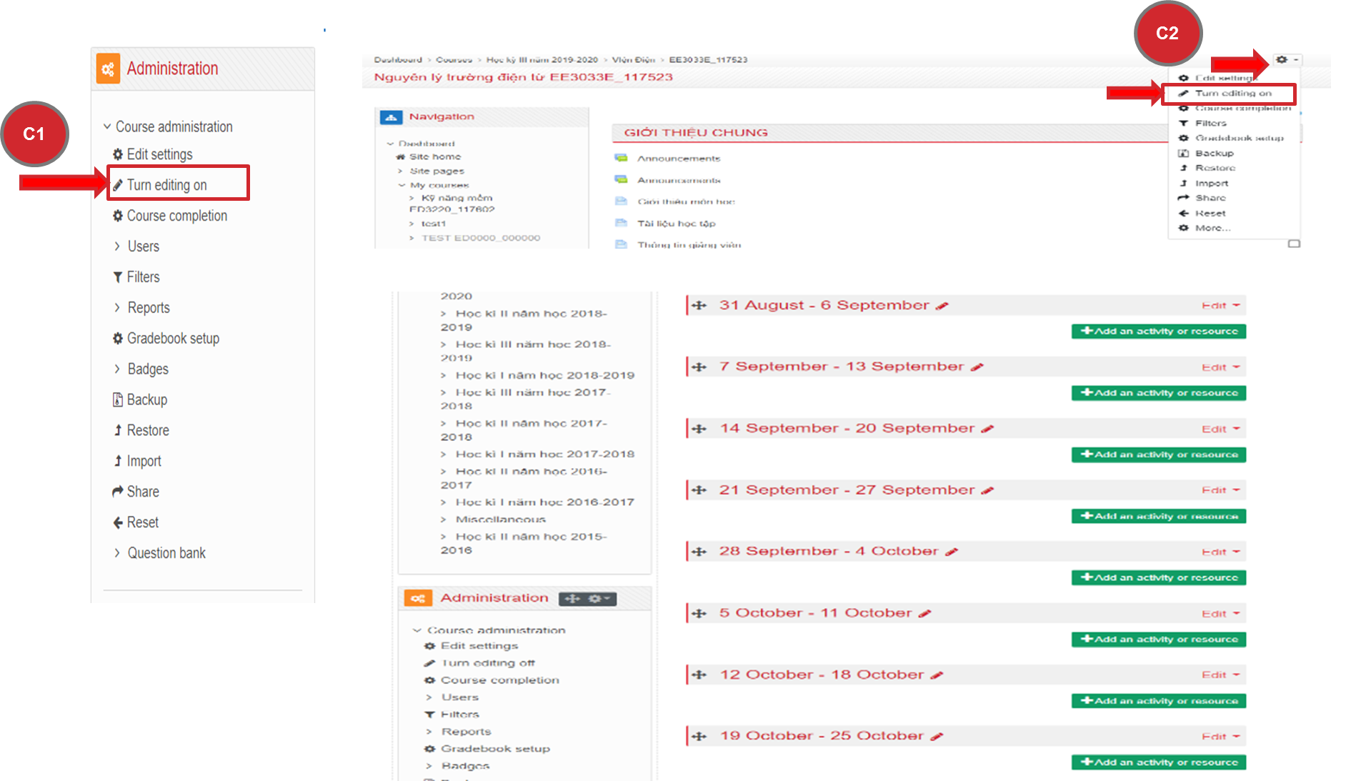 Bước 3. Cập nhật thông tin các tuần trong khóa học cơ sở