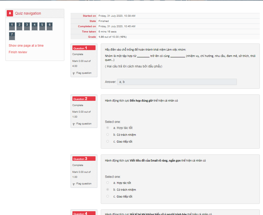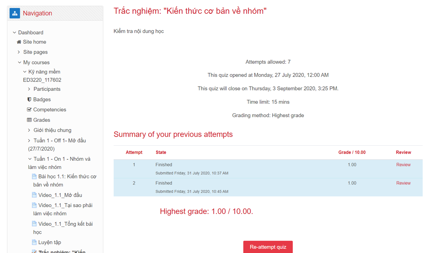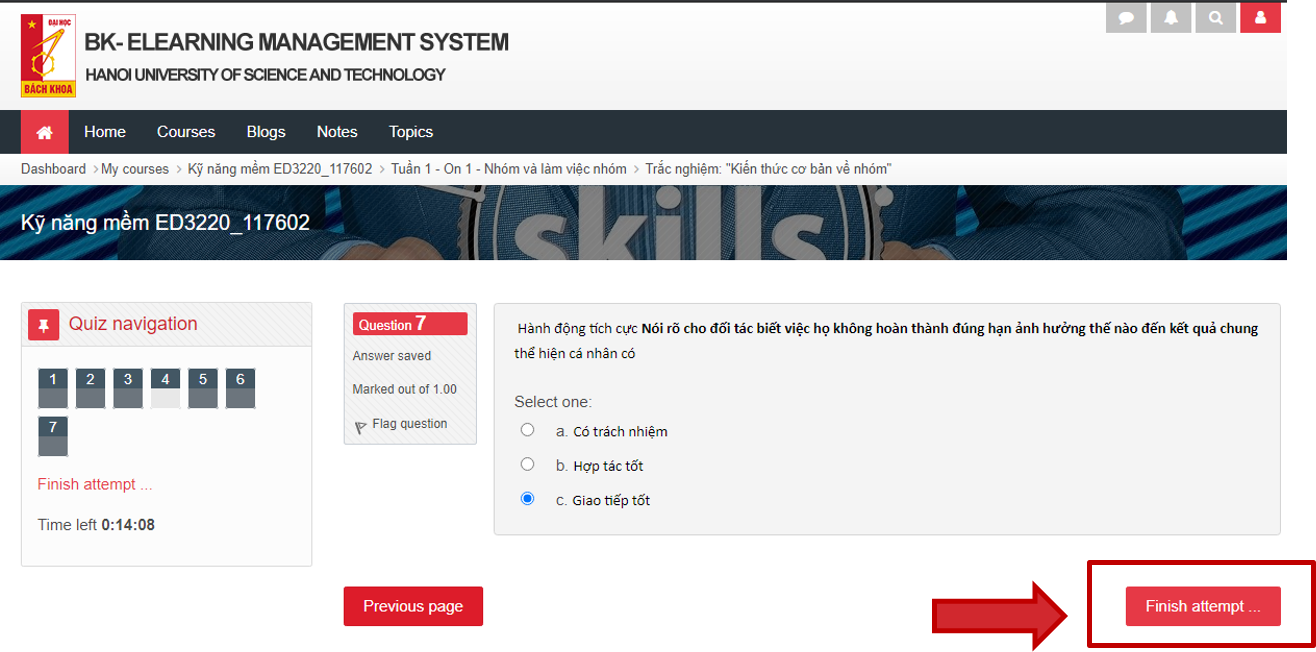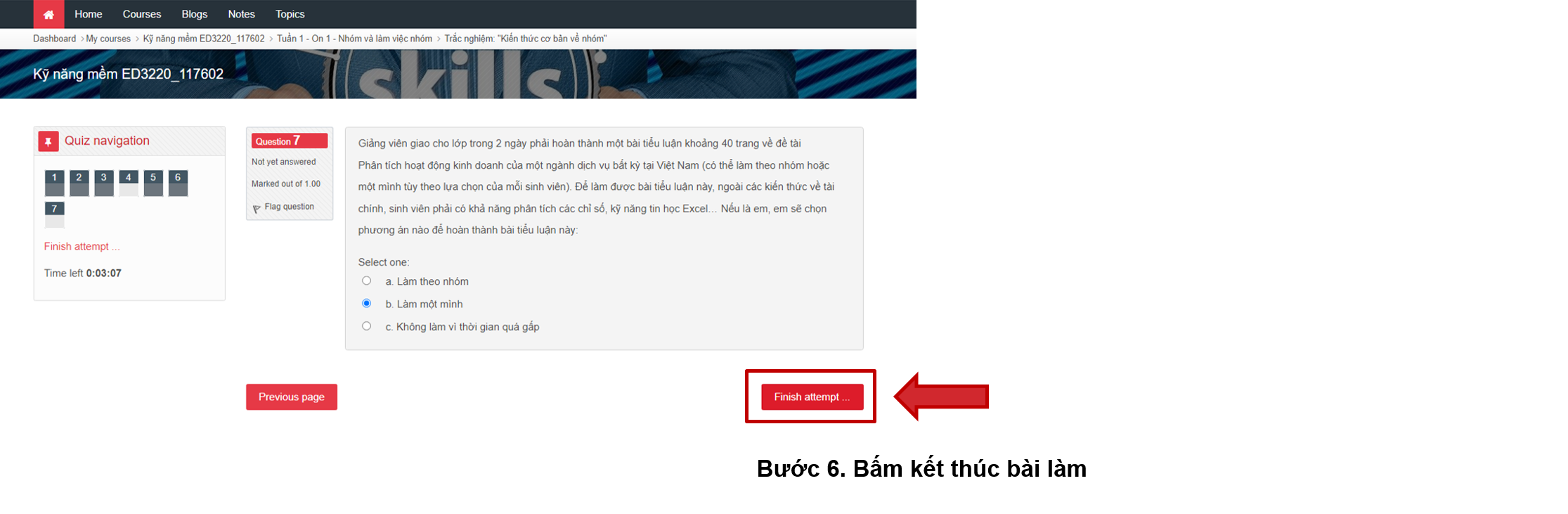 Bước 8. Sau đó bấm Finish attempt để kết thúc