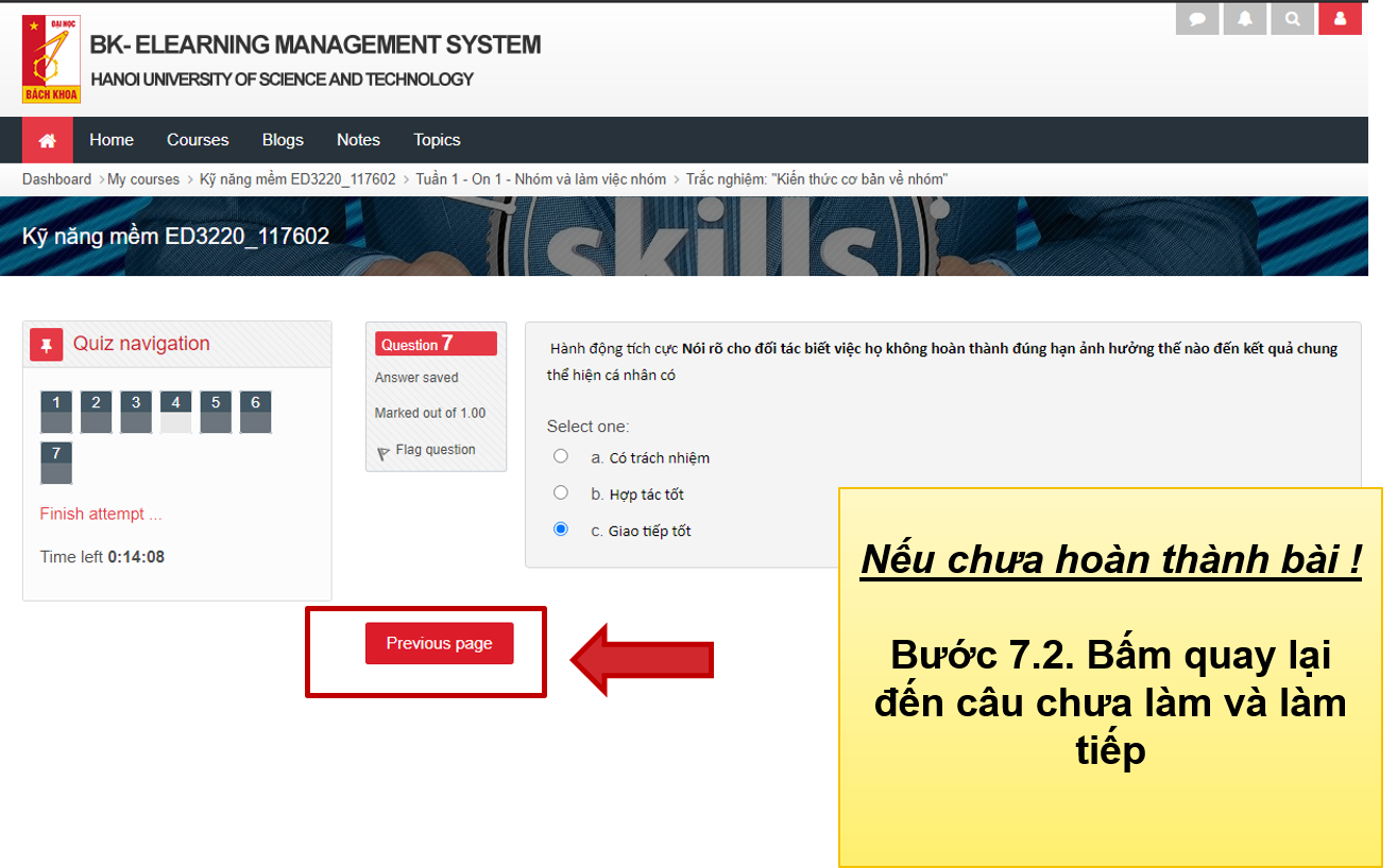 Bước 7.2. Bấm quay lại đến câu chưa làm và làm tiếp Nếu chưa hoàn thành bài !