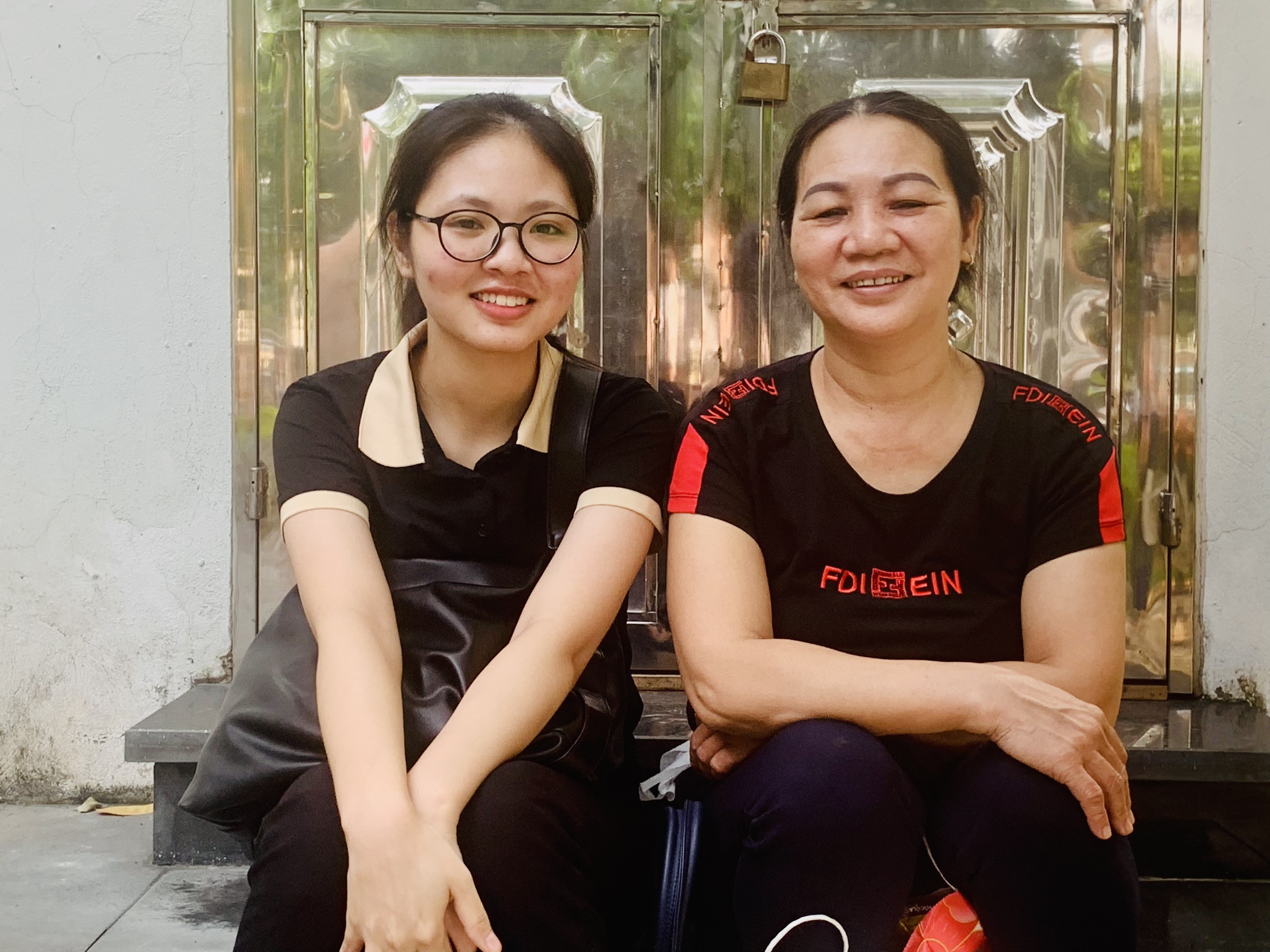 Chị Đặng Thị Oanh và con gái - tân sinh viên K67 Nguyễn Thị Mai Hoa. Ảnh: Gia Hân