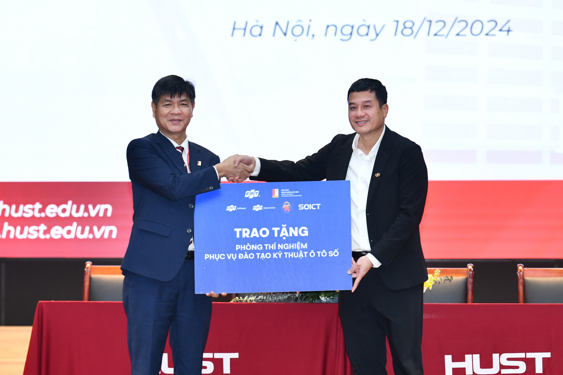 Tại lễ ra mắt chương trình đào tạo Kỹ thuật ô tô số, Trường CNTT&TT, Trường Cơ khí và Tập đoàn FPT đã ký kết hợp tác sâu rộng trong đào tạo và nghiên cứu về kỹ thuật ô tô số. Tập đoàn FPT đã trao tặng một phòng thí nghiệm công nghệ ô tô số hiện đại tại Trường Cơ khí nhằm hỗ trợ hiệu quả cho công tác giảng dạy và nghiên cứu.