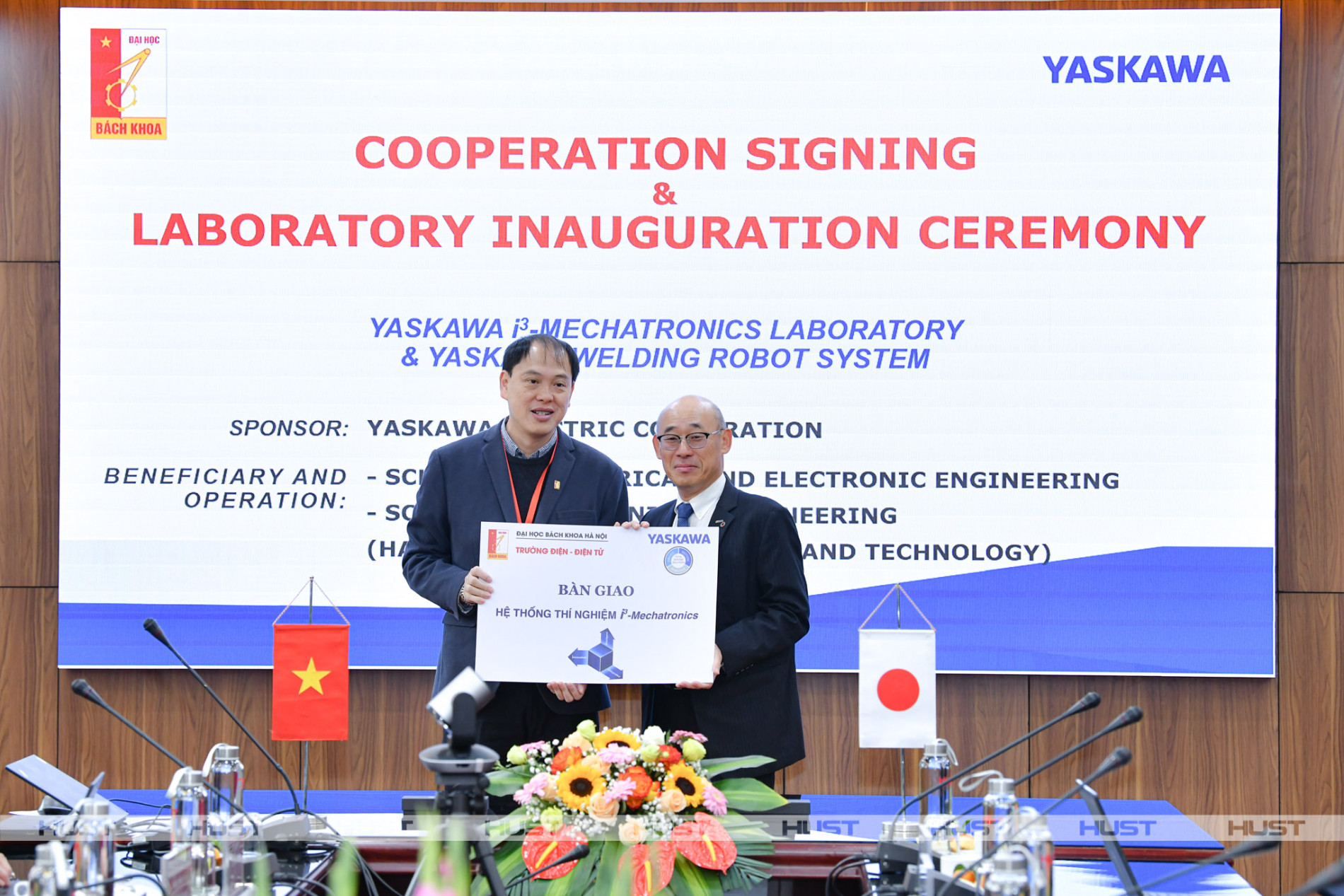 Bên cạnh đó, Tập đoàn cũng tào trợ Phòng thí nghiệm tự động hóa thông minh i3-Mechatronics trị giá 300,000 USD cho Trường Điện - Điện Tử. Đây là phòng thí nghiệm về tự động hóa nhà máy được đánh giá là toàn diện và hiện đại nhất Việt Nam và trong khu vực Asean, dựa trên nền tảng công nghệ, giải pháp và thiết bị tiên tiến dẫn đầu thế giới của Yaskawa (gồm robot, các bộ truyền động servo và biến tần AC tính năng cao, bộ điều khiển chuyển động, PLC, các gói giải pháp phần mềm số, ...) và một số hãng hàng đầu Nhật Bản (như thiết bị vision, barcode của Omron) tích hợp theo mô hình hệ thống tiên tiến thông minh (điều khiển số hóa, thị giác máy tính, hệ thống sản xuất thông minh), hướng tới cuộc cách mạng công nghiệp 4.0, rất phù hợp với chương trình đào tạo về tự động hóa, cơ điện tử và một số ngành liên quan tại Đại học Bách khoa Hà Nội.