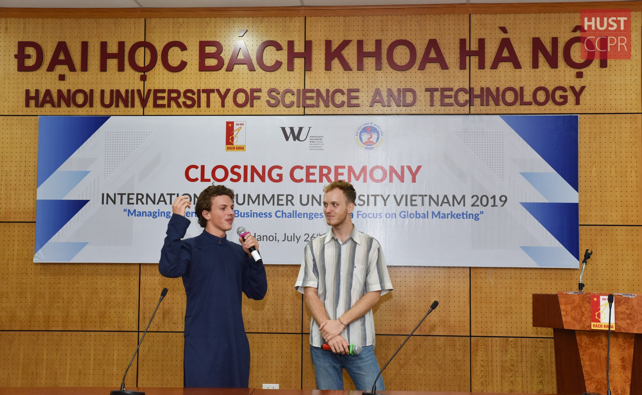 Diễn ra từ 08/7/2019, khóa học trao đổi hè ISU Vietnam 2019 hợp tác giữa Trường Đại học Kinh tế Quốc dân, Đại học Bách khoa Hà Nội và Đại học Kinh tế và Kinh doanh Vienna, Cộng hòa Áo đã kết thúc thành công với những kiến thức chuyên môn ý nghĩa và trải nghiệm tốt đẹp về đất nước Việt Nam xinh đẹp, giàu văn hóa truyền thống. Lễ bế mạc khóa học diễn ra ngày 26/7/2019 tại Trường ĐHBK Hà Nội.